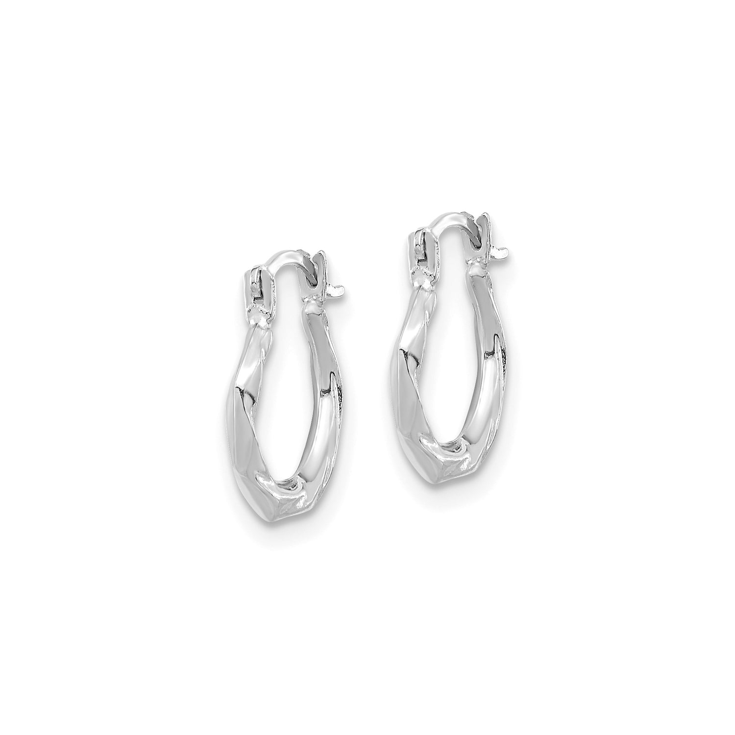 14k White Gold Twisted Hoop Earrings with Faceted Design, Lightweight Modern Style