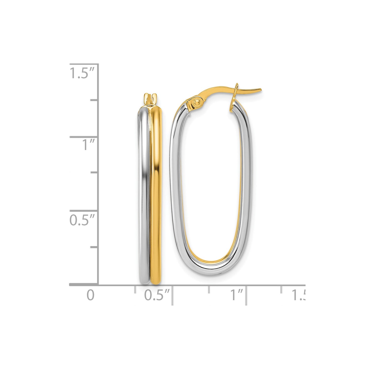 14k Yellow Gold and Rhodium Oval Hoop Earrings, Two-Tone Contemporary Design for Women
