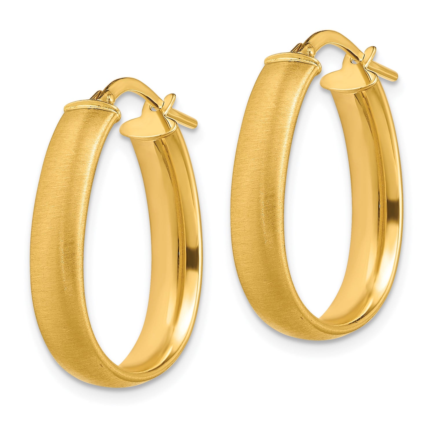 14k Yellow Gold Hoop Earrings, Angular Oval Brushed Finish, Lightweight Modern Minimalist Design