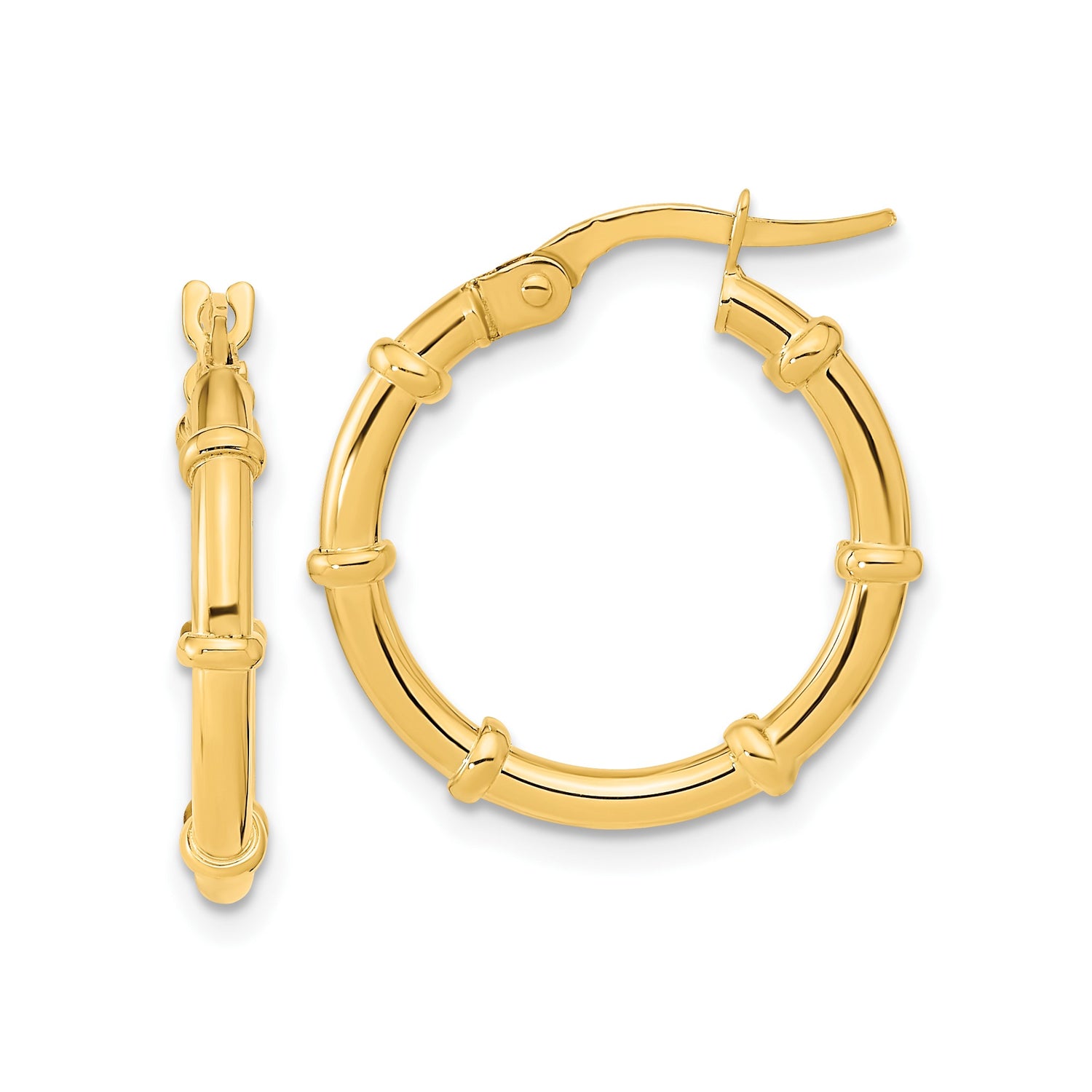 14k Yellow Gold Hoop Earrings, Bamboo Design, Textured Lightweight Style for Women