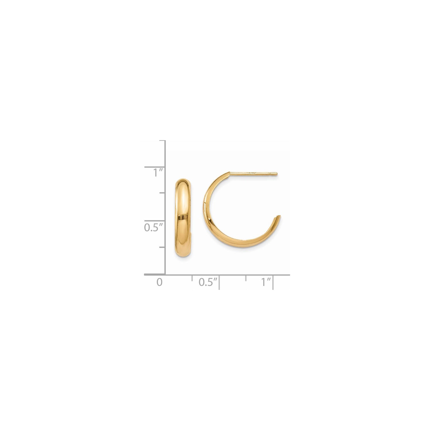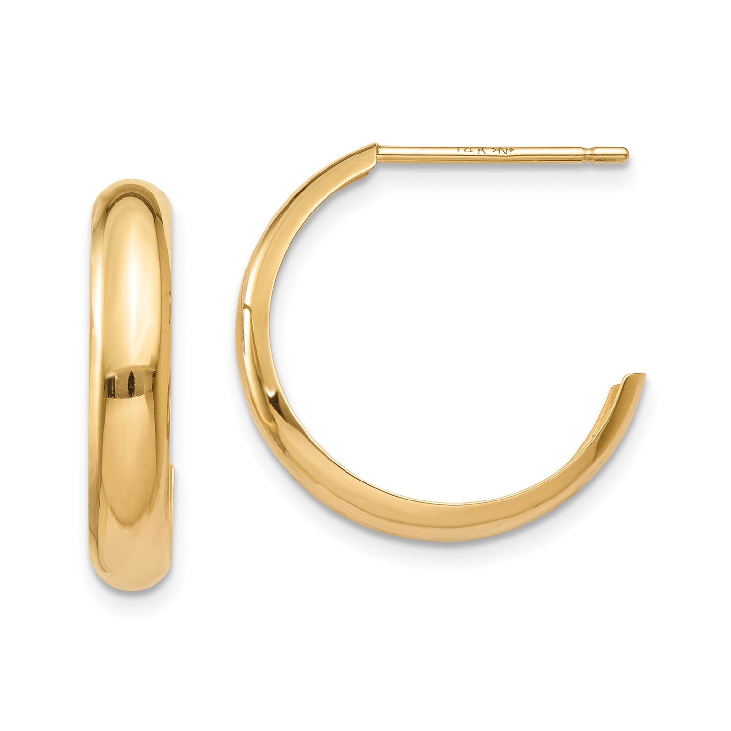 14k Yellow Gold Hoop Earrings, Classic Polished J Hoop Design for Women