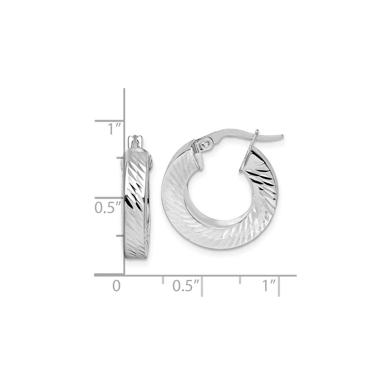 Elevate Your Jewelry Collection With These 14k Yellow Gold Hoops Designed For Timeless Elegance. Featuring A Dual Finish Of Rhodium And Gold, These Versatile Round Hoop Earrings Combine Durable Craftsmanship With Sophisticated Style. The Textured Diamond Cut Hoops Enhance Their Luminous Appeal, Letting Each Angle Catch And Reflect Light With Grace. Whether You Wear Them As Fashion Diamond Cut Hoops Or As Part Of A Layered Look, These Classic Gold Hoop Earrings Add A Refined Touch To Your Ensemble.