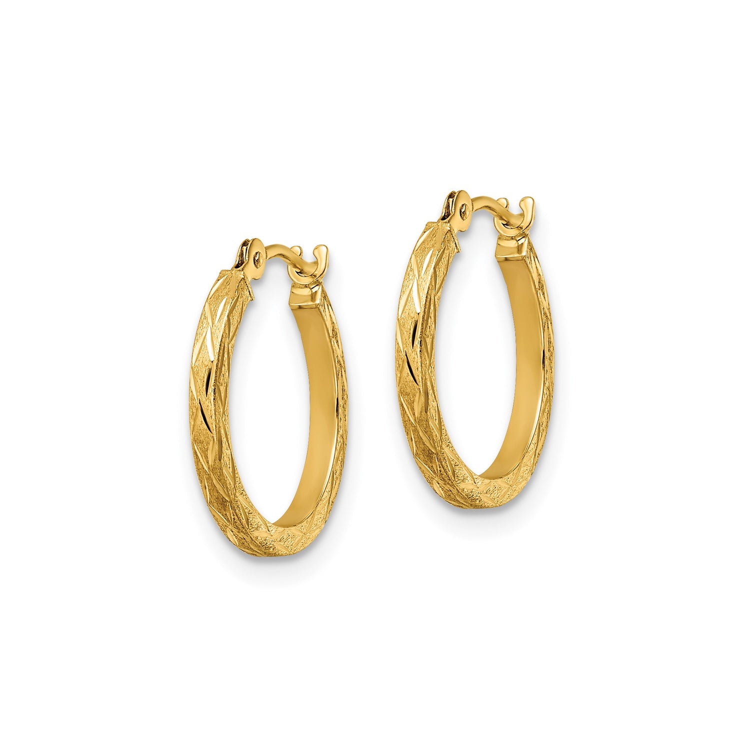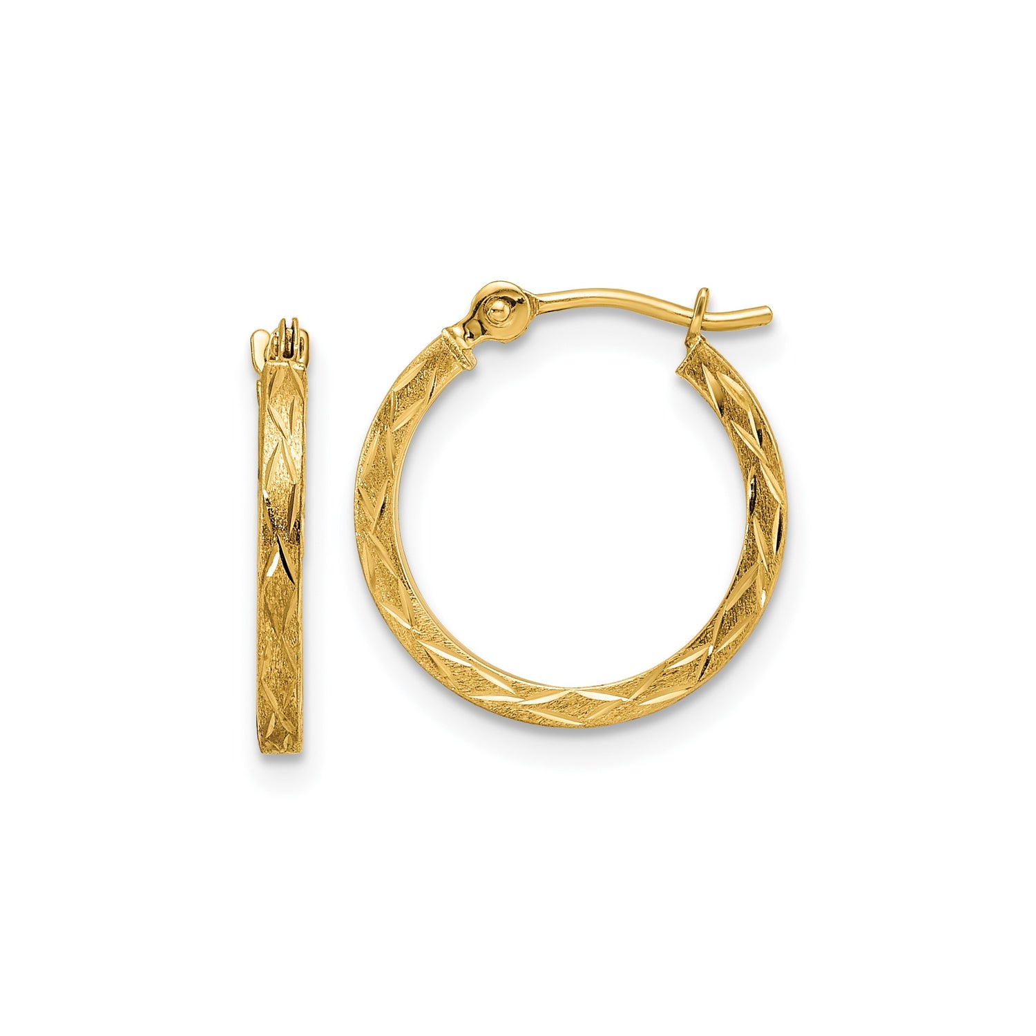 14k Yellow Gold Hoop Earrings, Diamond-Cut Textured with Polished and Satin Finish