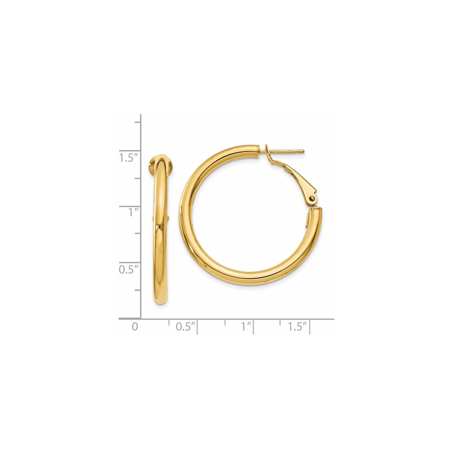 14k Yellow Gold Hoop Earrings, Medium Round Hoops with Hinged Clasp and Polished Finish