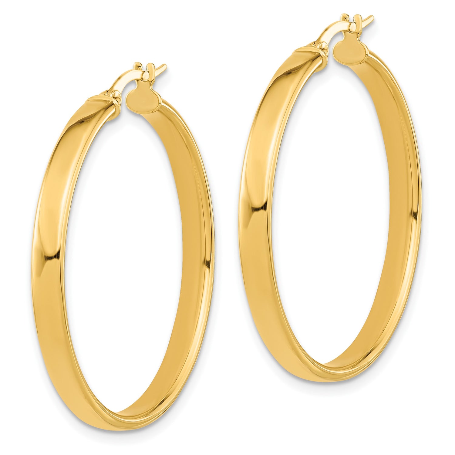 14k Yellow Gold Hoop Earrings, Polished Round Design, Lightweight Minimalist Style for Women