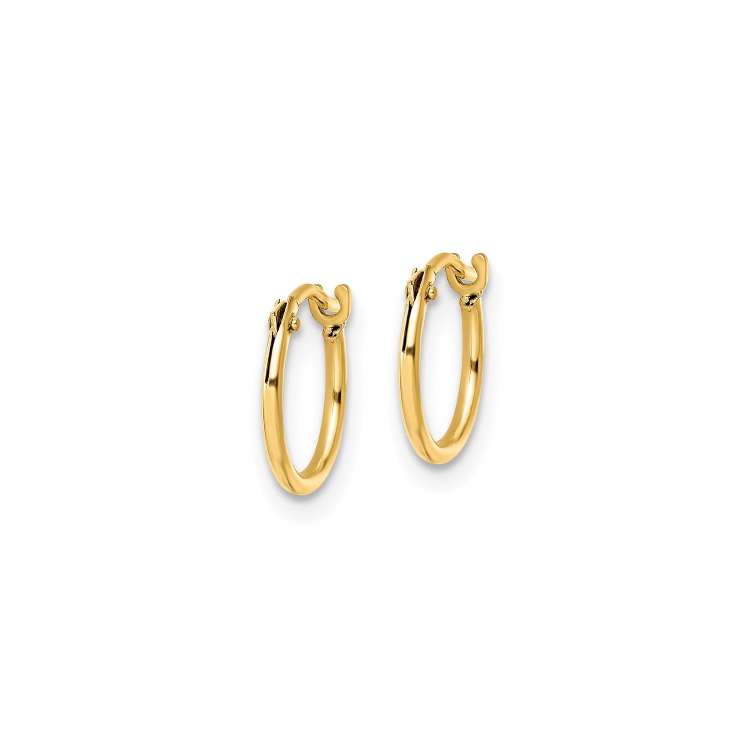 14k Yellow Gold Hoop Earrings, Small Round Polished Hoops with Hinged Latch Back