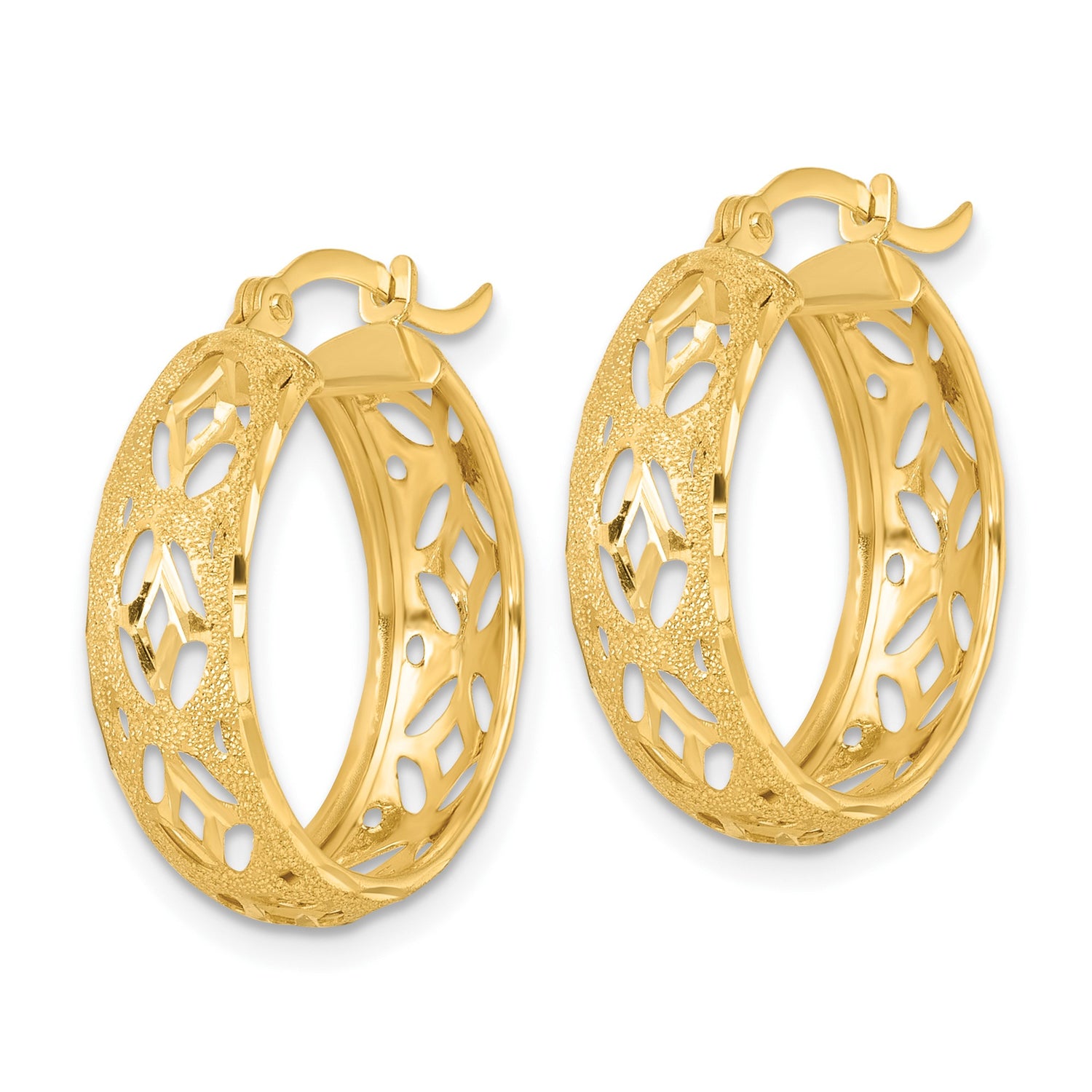 14k Yellow Gold Hoop Earrings, Textured Diamond Cut Filigree, Lightweight Round Design