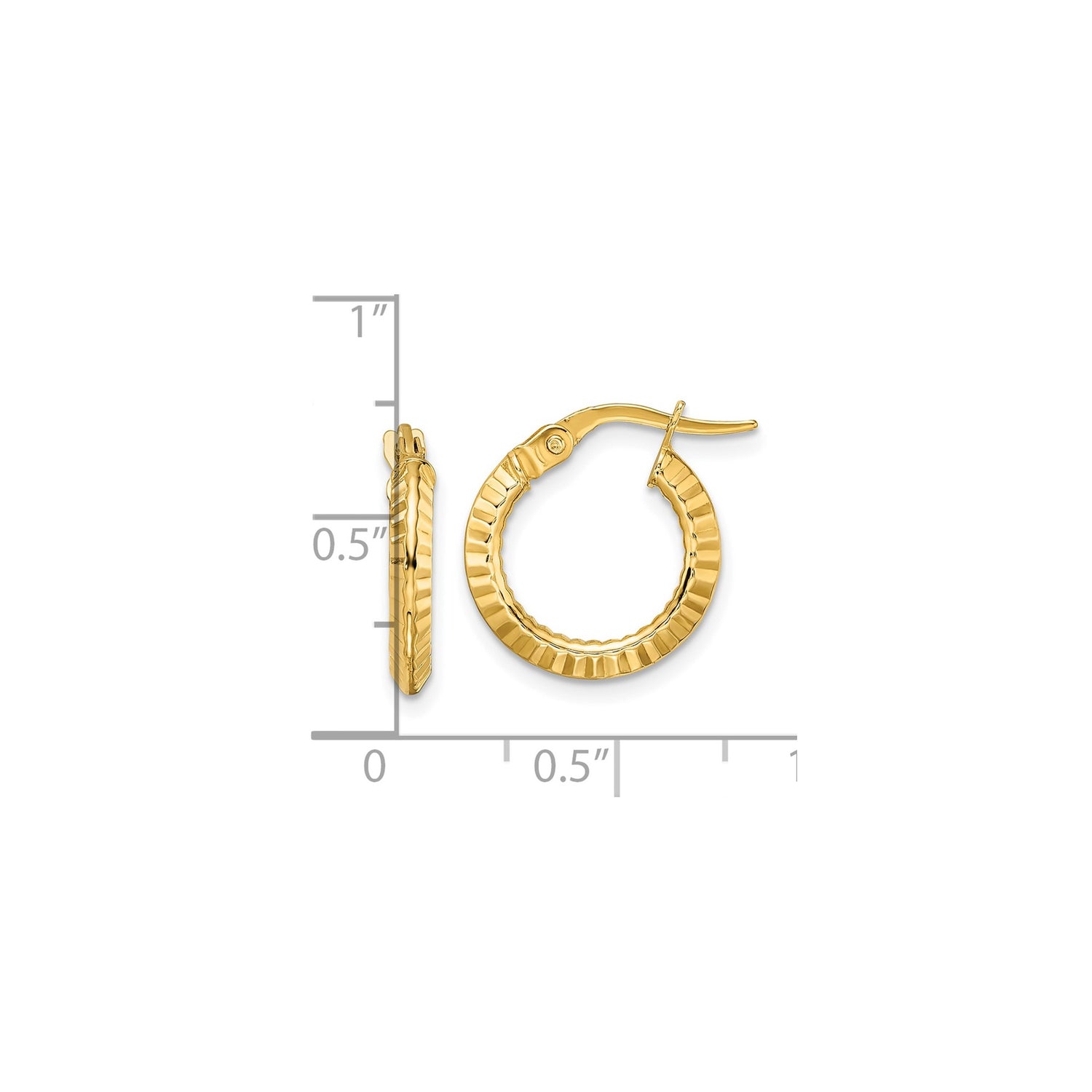 14k Yellow Gold Hoop Earrings, Textured Ribbed Design with High-Polish Finish