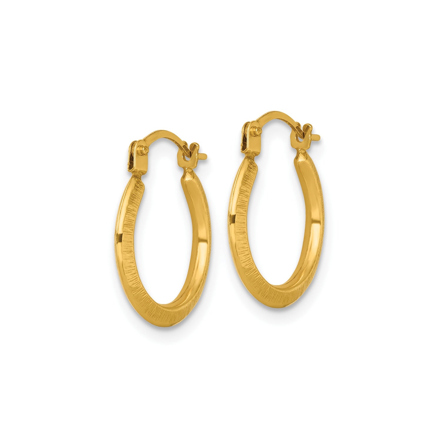 14k Yellow Gold Hoop Earrings, Textured Round Tube Design, Latch-Back Closure, Lightweight Classic Style