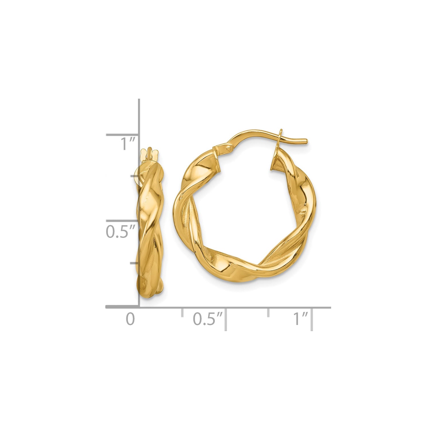 14k Yellow Gold Hoop Earrings, Twisted Braided Design, Lightweight Polished Style for Women
