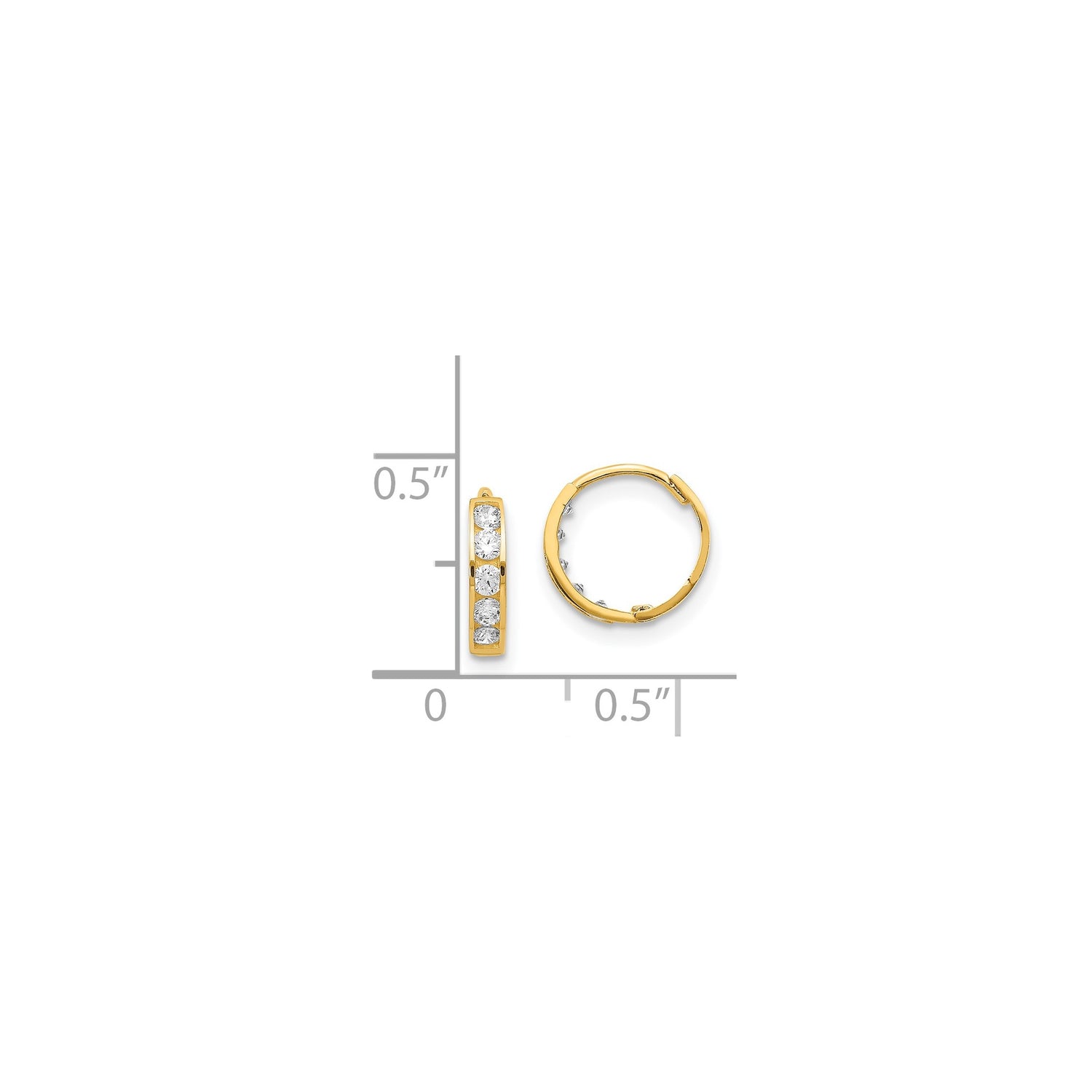 14k Yellow Gold Hoop Earrings with Cubic Zirconia in Channel Setting, Classic Polished Style