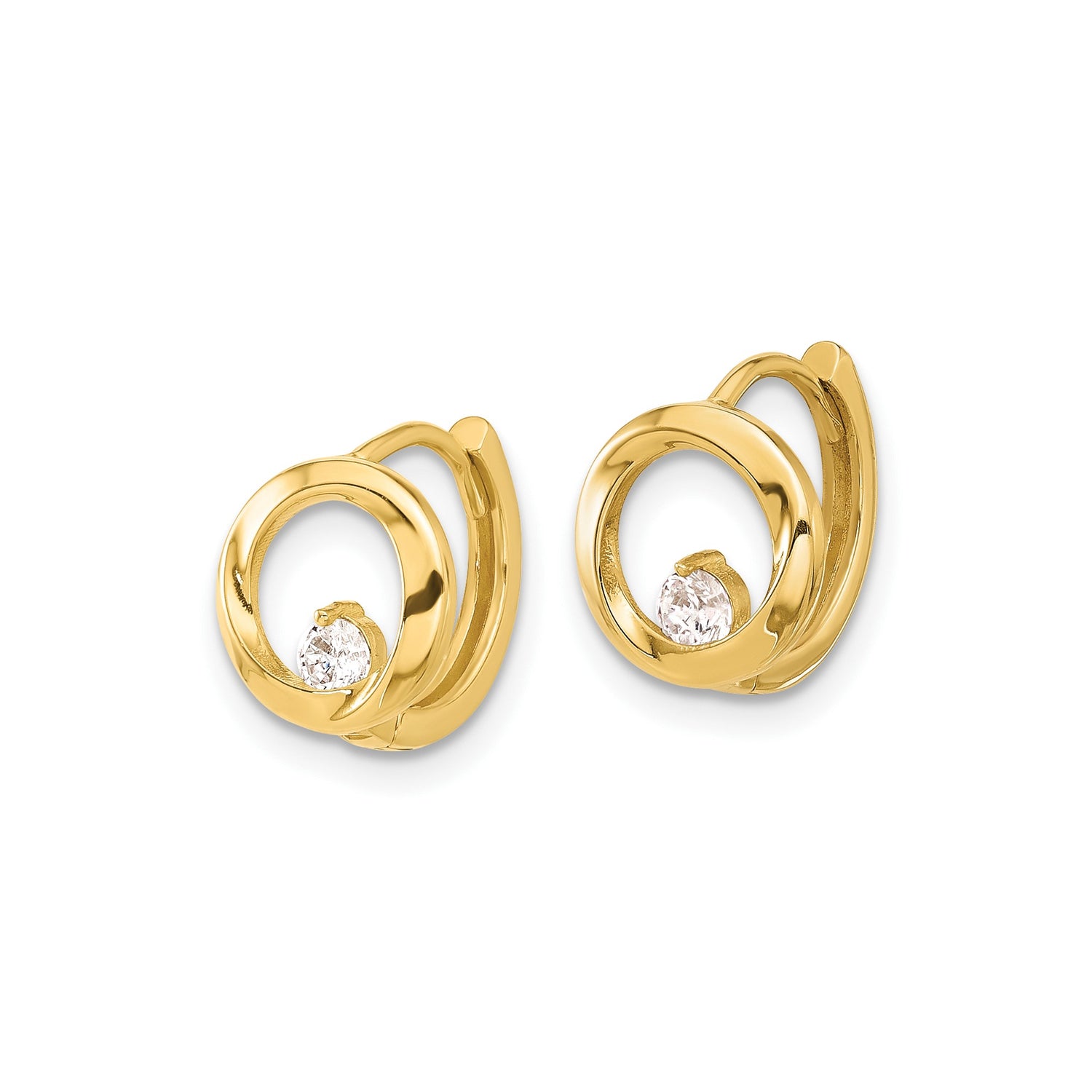 14k Yellow Gold Hoop Earrings with Cubic Zirconia, Modern Circular Design