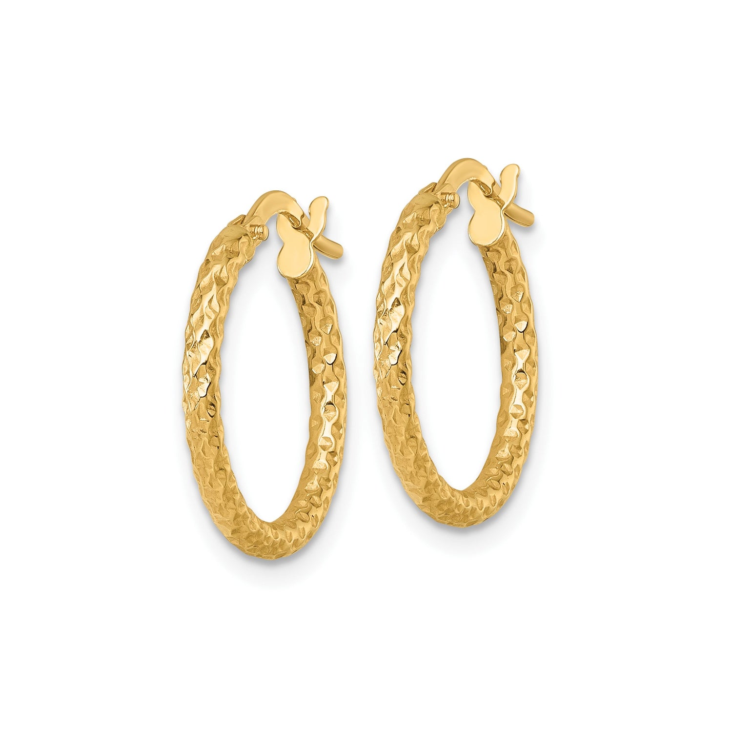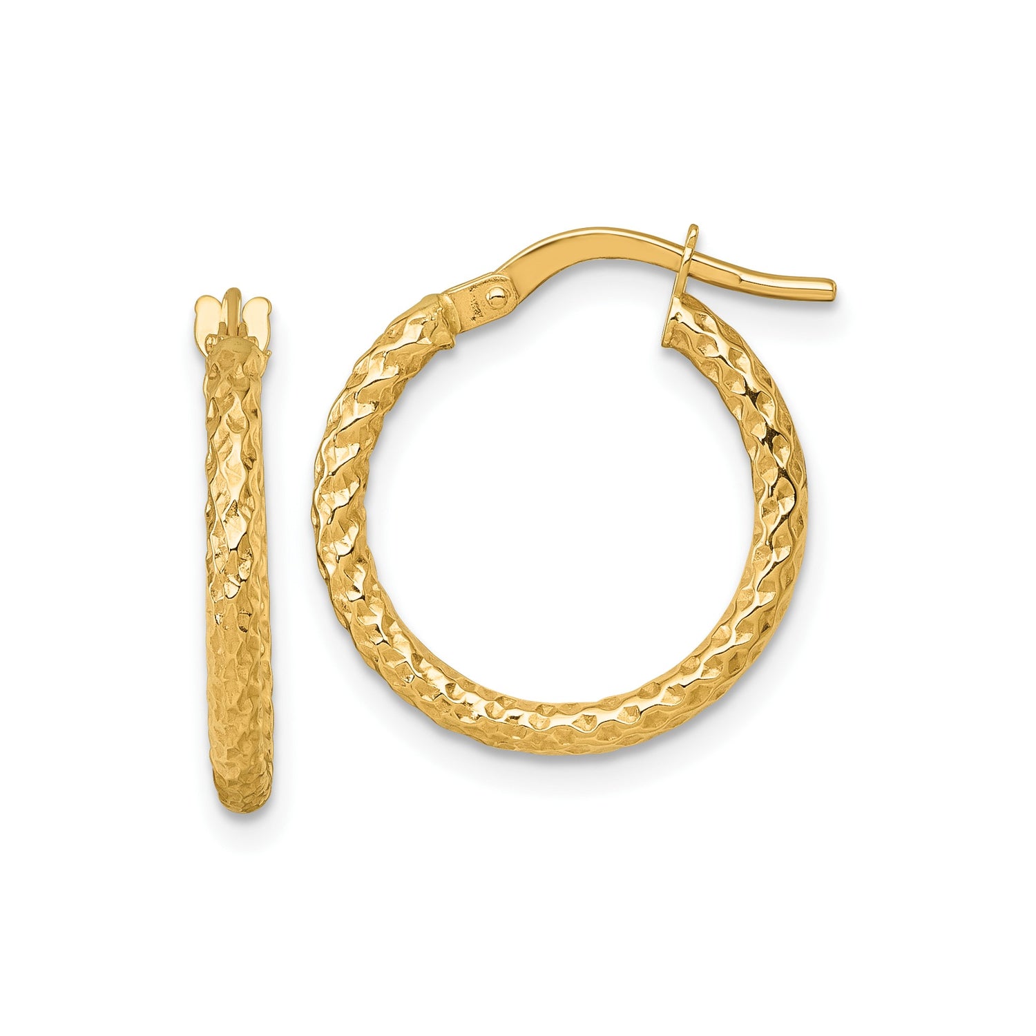 14k Yellow Gold Hoop Earrings with Hammered Finish and Twisted Design for Women