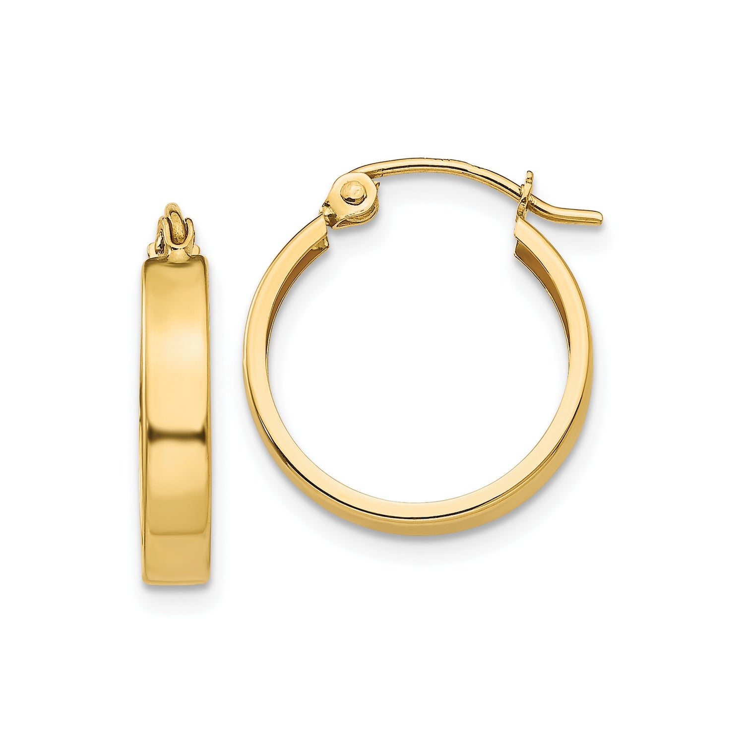 14k Yellow Gold Hoop Earrings with Hinged Snap Closure, Polished Finish, Lightweight Classic Style