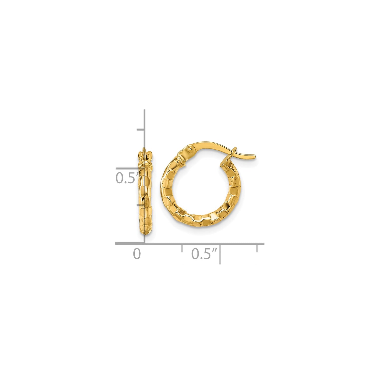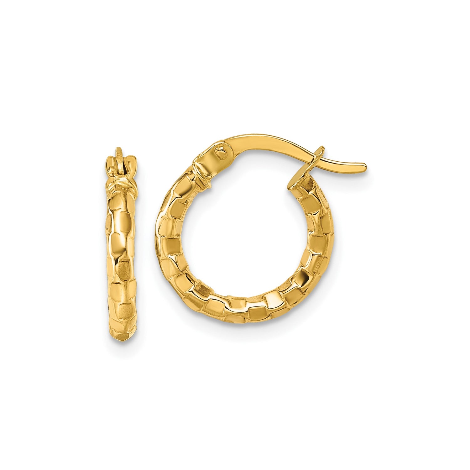 14k Yellow Gold Hoop Earrings with Textured Rounded Scale Pattern for Women