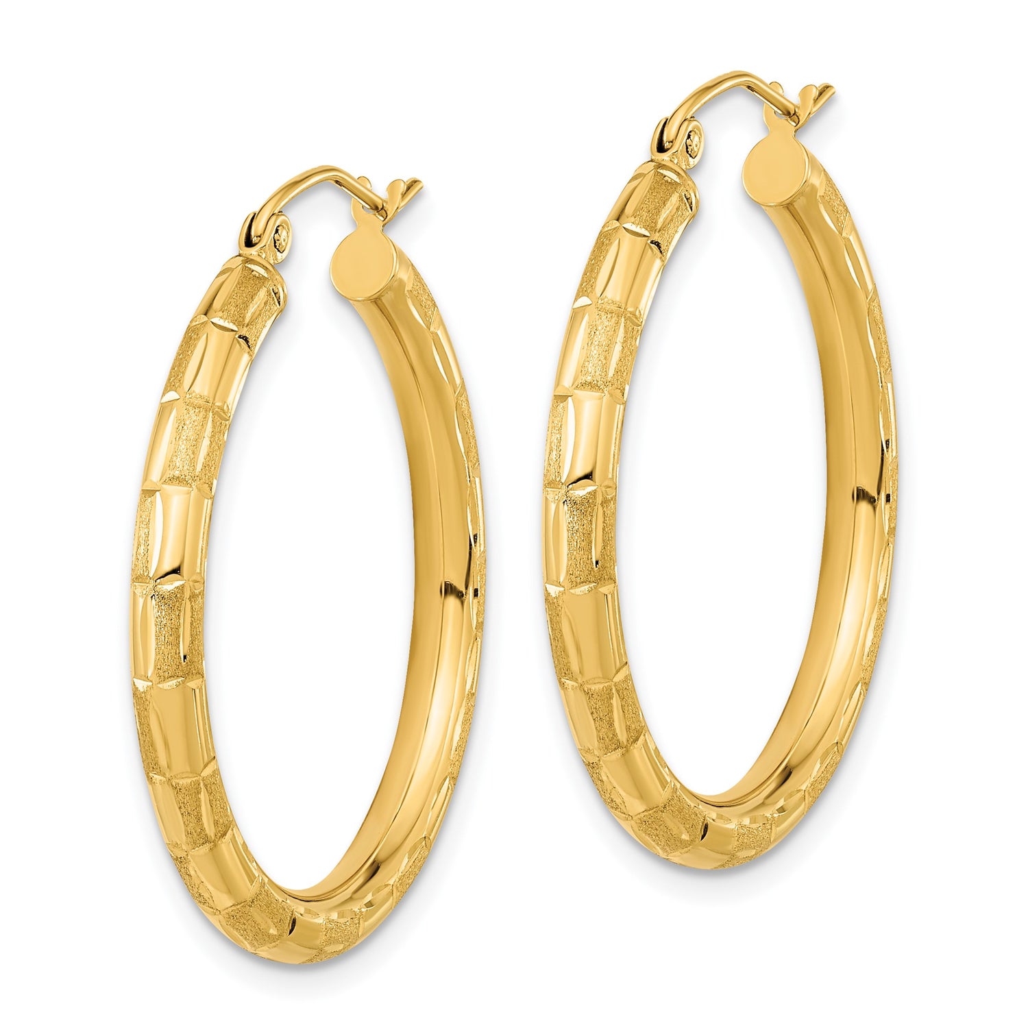14k Yellow Gold Hoop Earrings with Textured Satin Finish and Bamboo Design