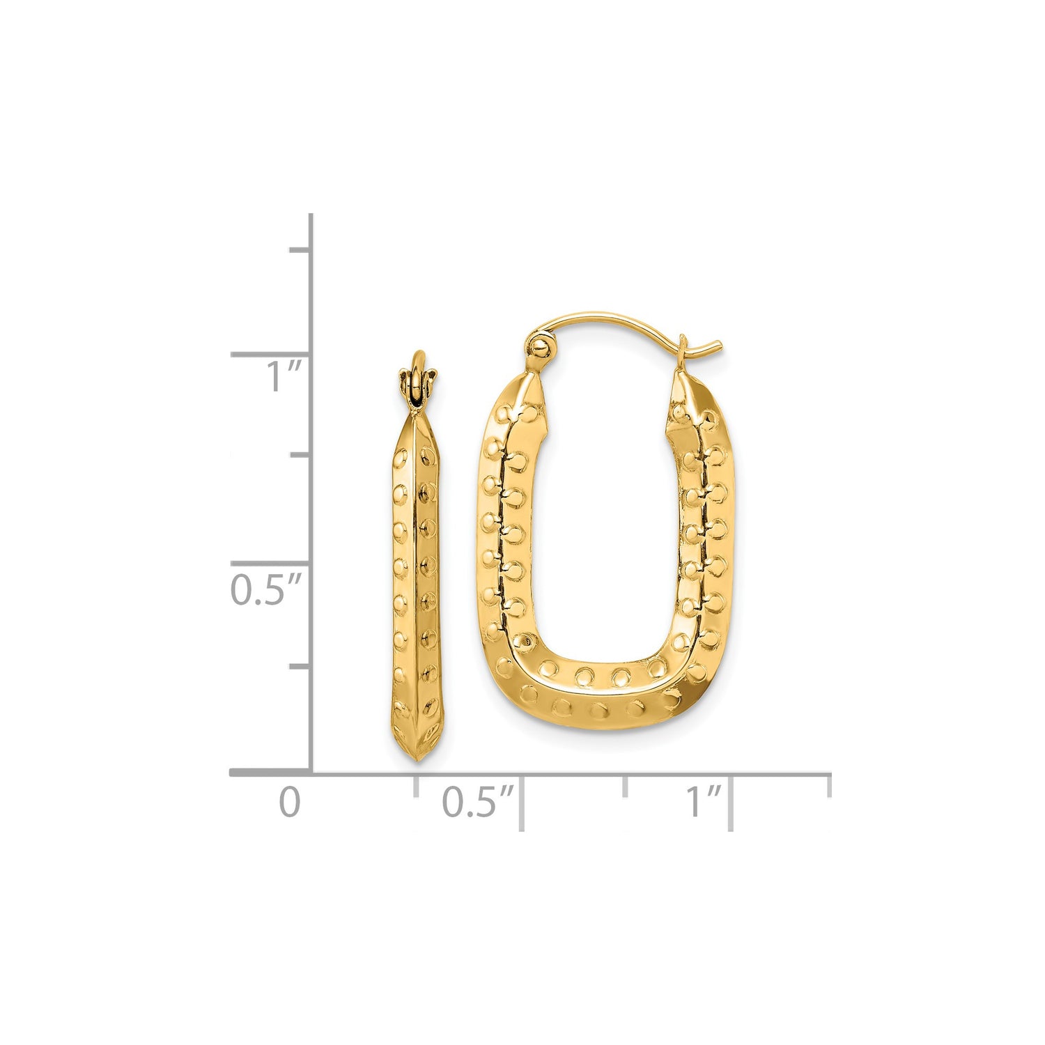14k Yellow Gold Rectangular Hoop Earrings with Dotted Texture and Hammered Finish
