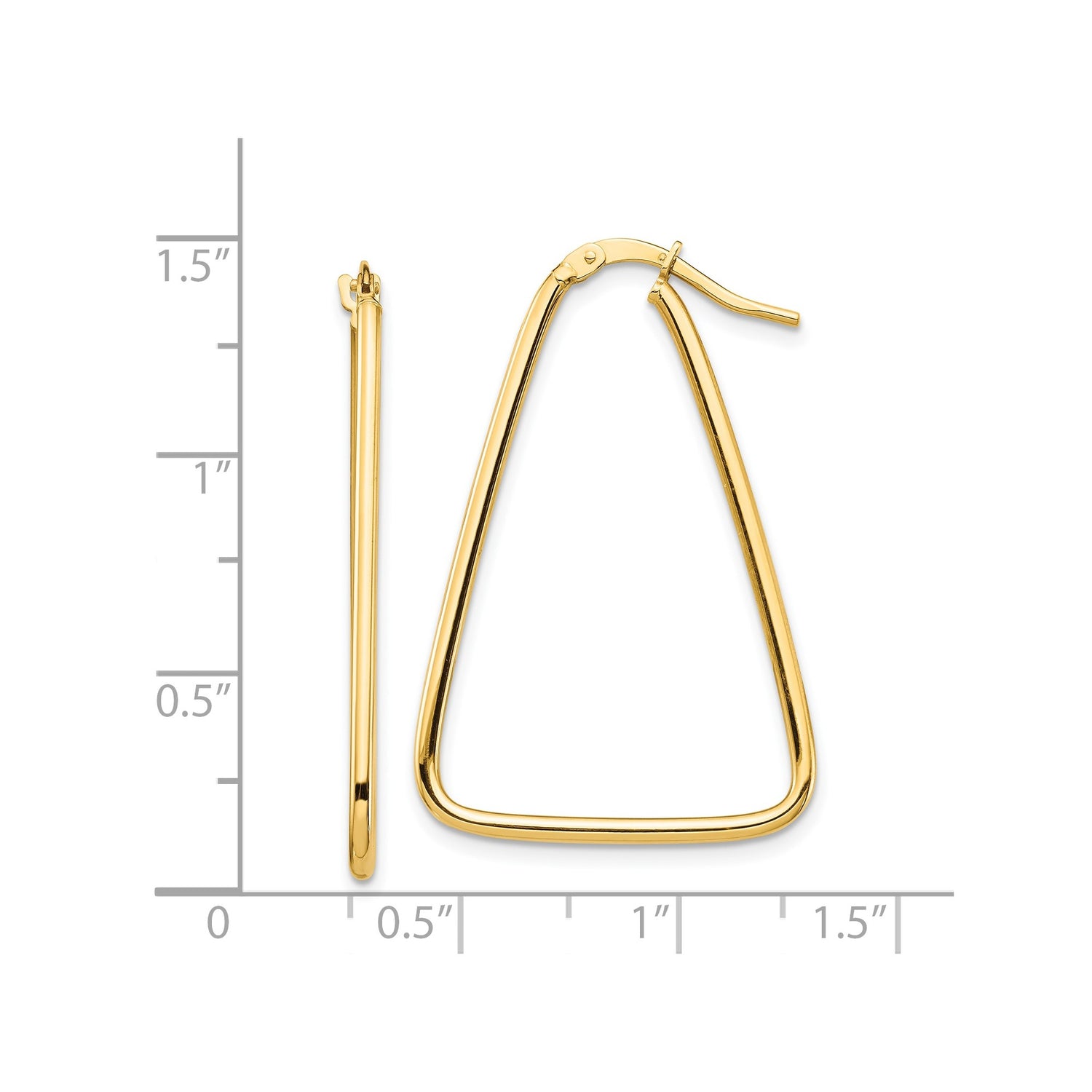 14k Yellow Gold Triangle Hoop Earrings, Geometric Minimalist Design for Women