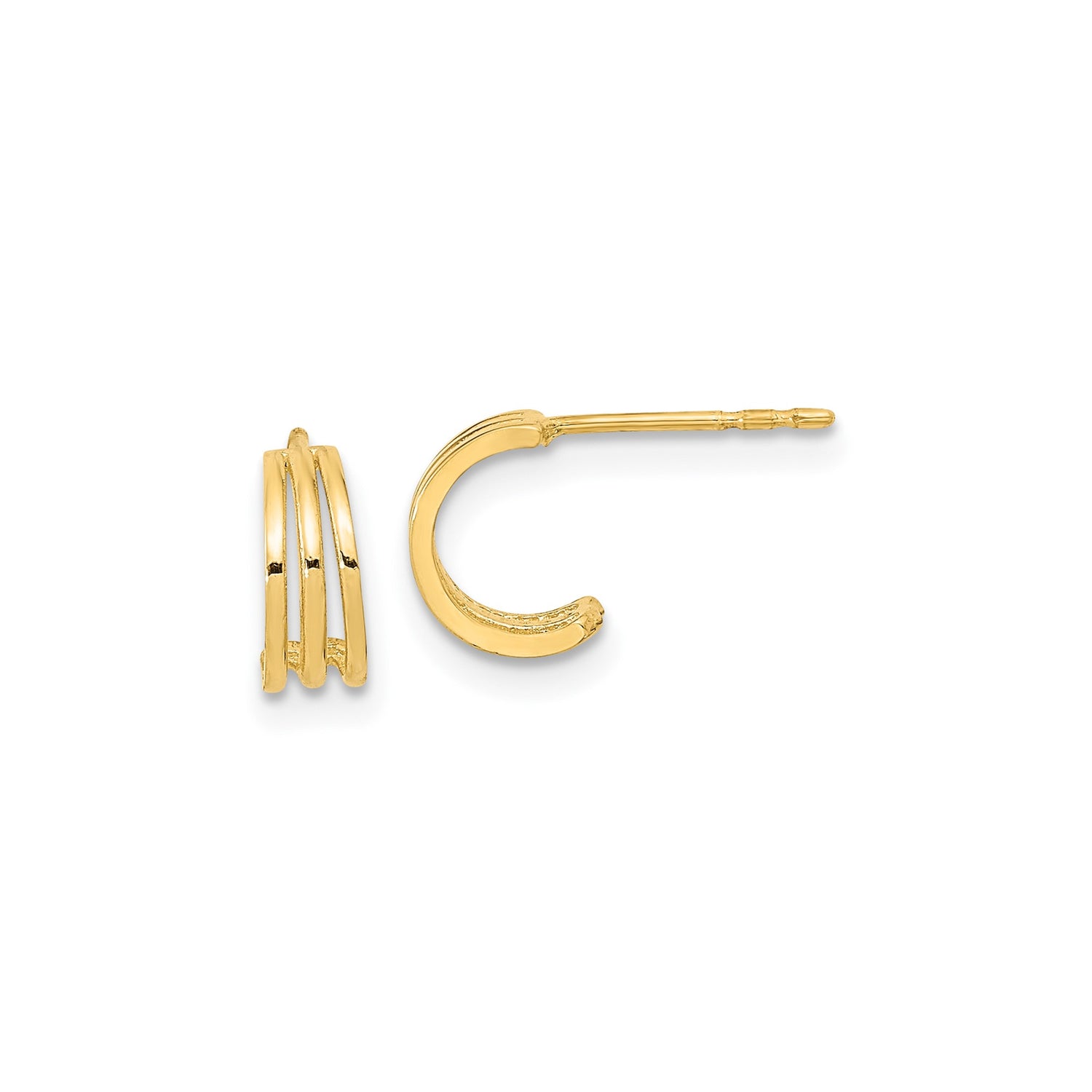 Ideal for those seeking fine gold jewelry that feels fresh yet timeless, the elegant stud earrings are shaped for long-lasting appeal. These refined three hoop studs make a statement without overwhelming your look, and their sleek gold design offers the perfect finishing touch for women who love dainty gold studs with just the right amount of shine. Add classic yellow gold hoops with a layered design to your collection and enjoy luxury minimalist gold hoops in an everyday style.