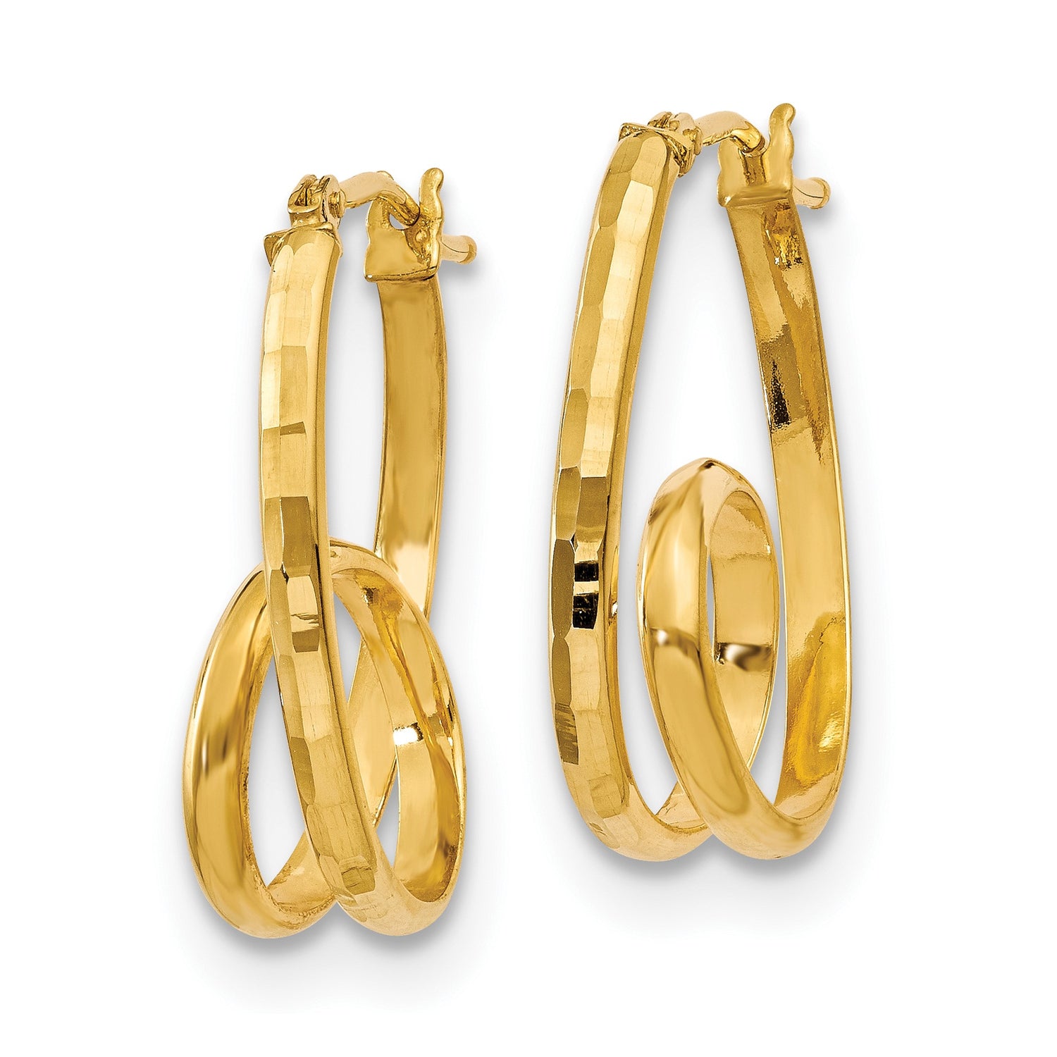14k Yellow Gold Twisted Hoop Earrings with Polished and Hammered Interlocking Oval Design
