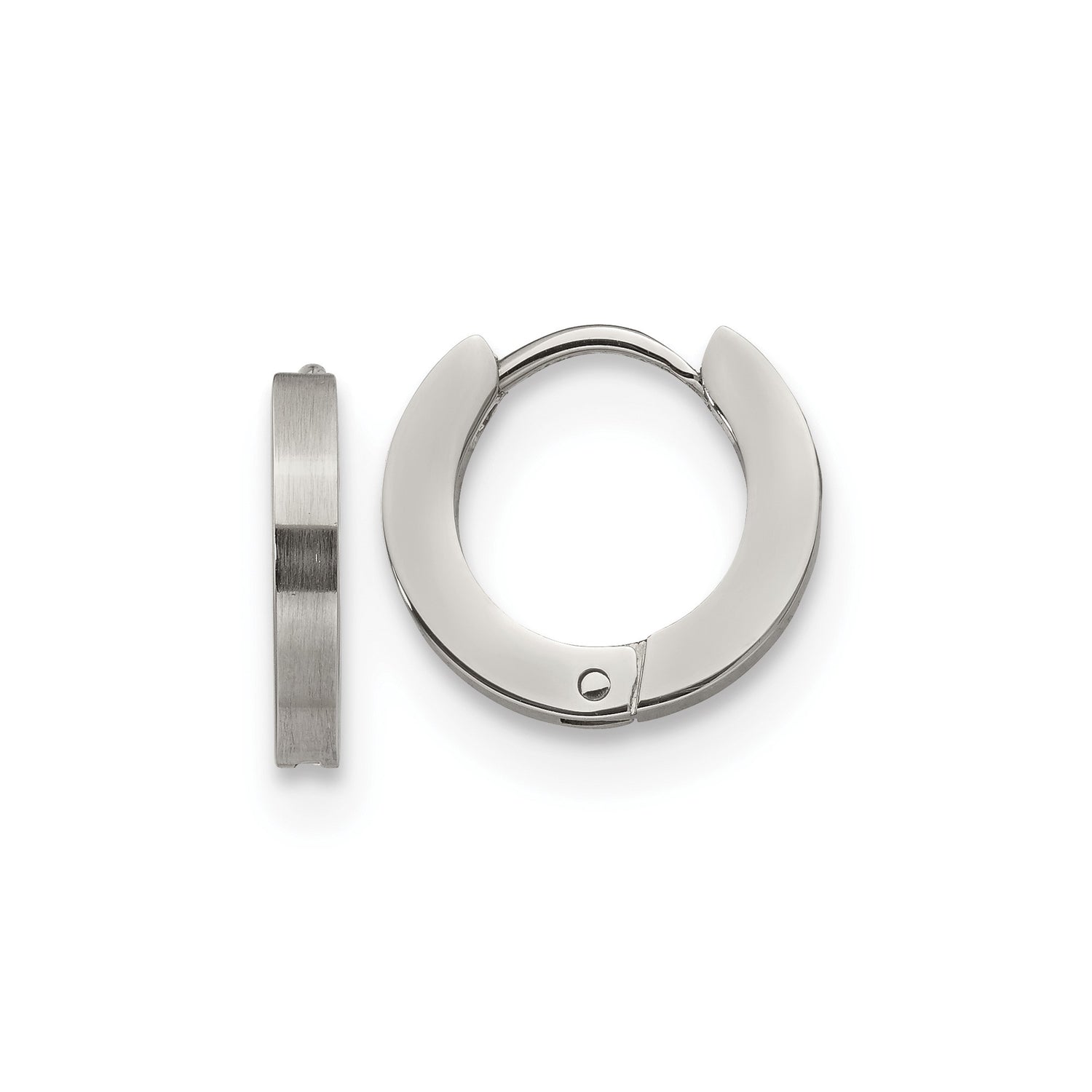 Simplicity Meets Edge In This Steel Huggie Earring That Transcends Trends. Whether You Favor Brushed Finish Earring Designs Or Prefer Minimal Everyday Hoops, This Piece Captures The Essence Of Modern Men's Earring Trends. Unadorned Masculine Hoop Earrings Like This Allow Easy Pairing With Daily Looks, Creating A Balanced Expression Of Neutral Design Hoop Earrings For Today's Diverse Wardrobe.