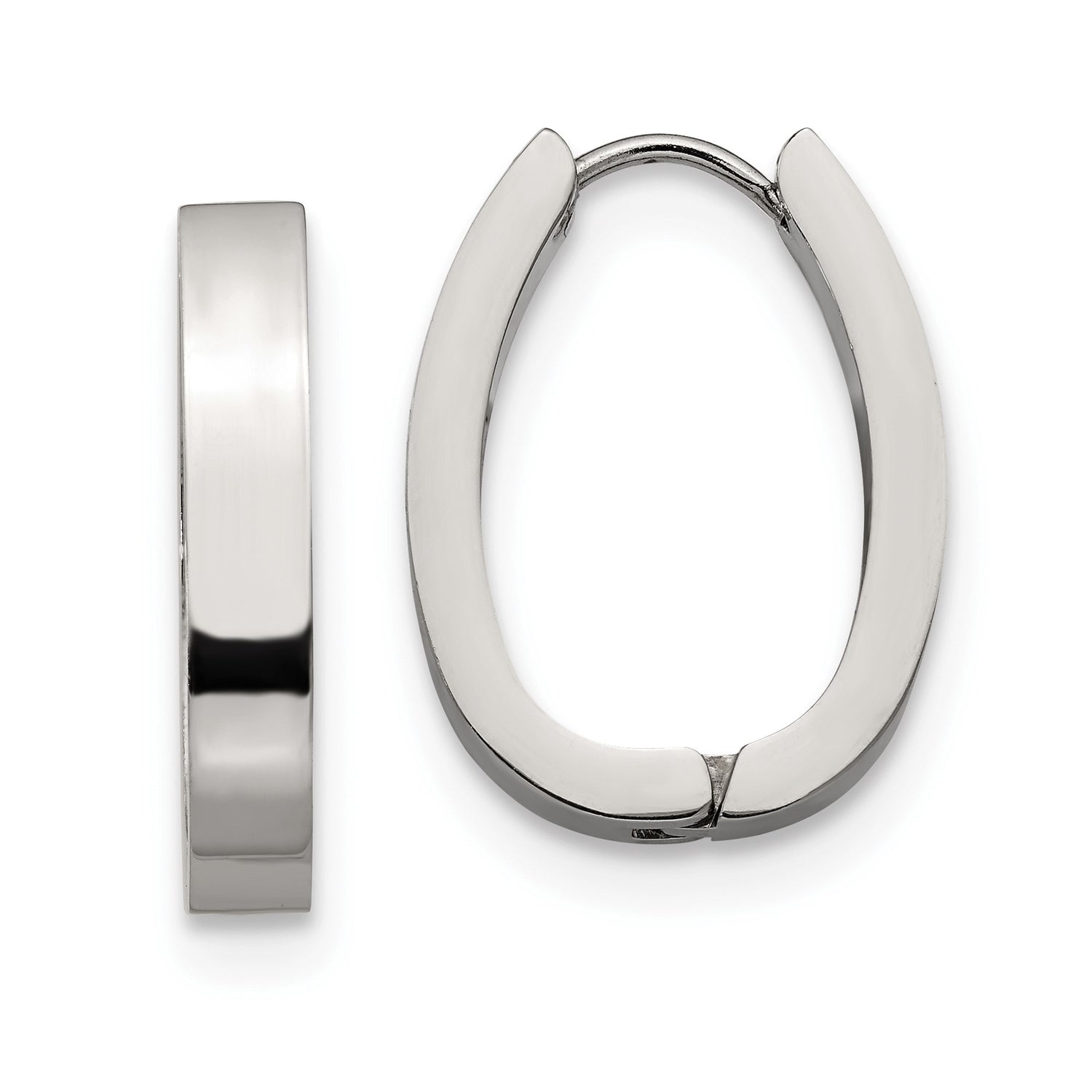 316 Stainless Steel Hoop Earrings, Polished Oval Hinged Design, Minimalist Unisex Style