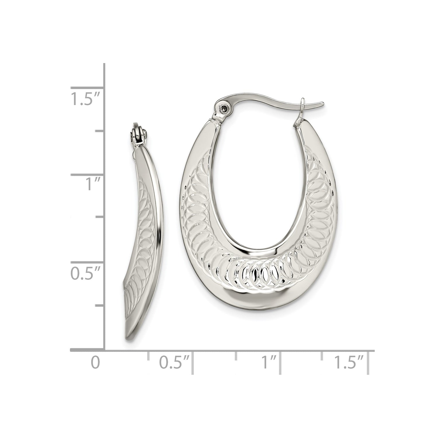 316 Stainless Steel Oval Hoop Earrings with Etched Circular Pattern and Latch Back Closure