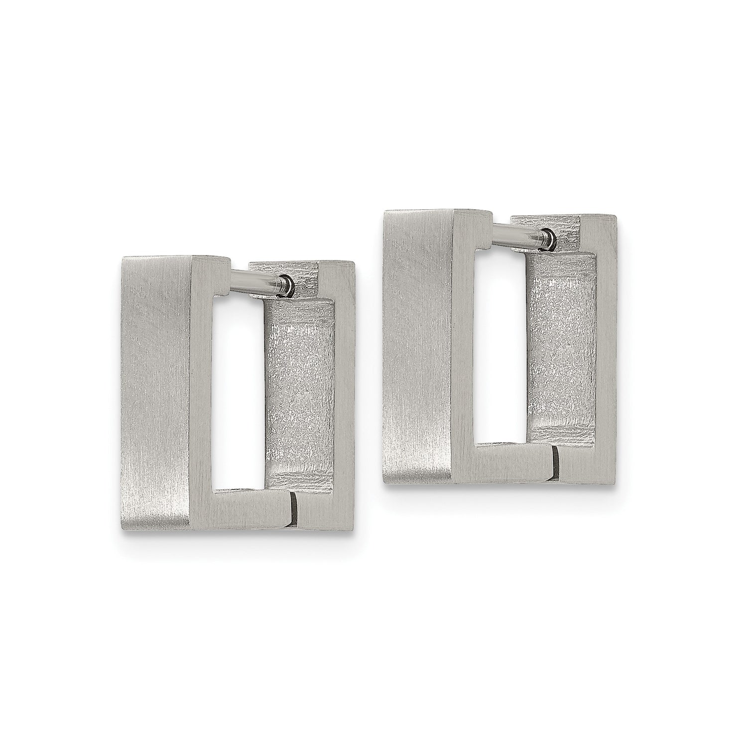 Crafted with precision, these brushed stainless steel hoops feature a masculine square silhouette that makes a subtle yet notable impression. Their durable brushed finish offers a refined alternative to high-shine metals, delivering cool versatility ideal for both day and night wear. These everyday men's square hoops work well with relaxed apparel or edgy ensembles, bringing consistent urban elegance to your clothing lineup. No exaggerated design or heavy detailing, just bold structural lines aligned with a minimalist aesthetic.
