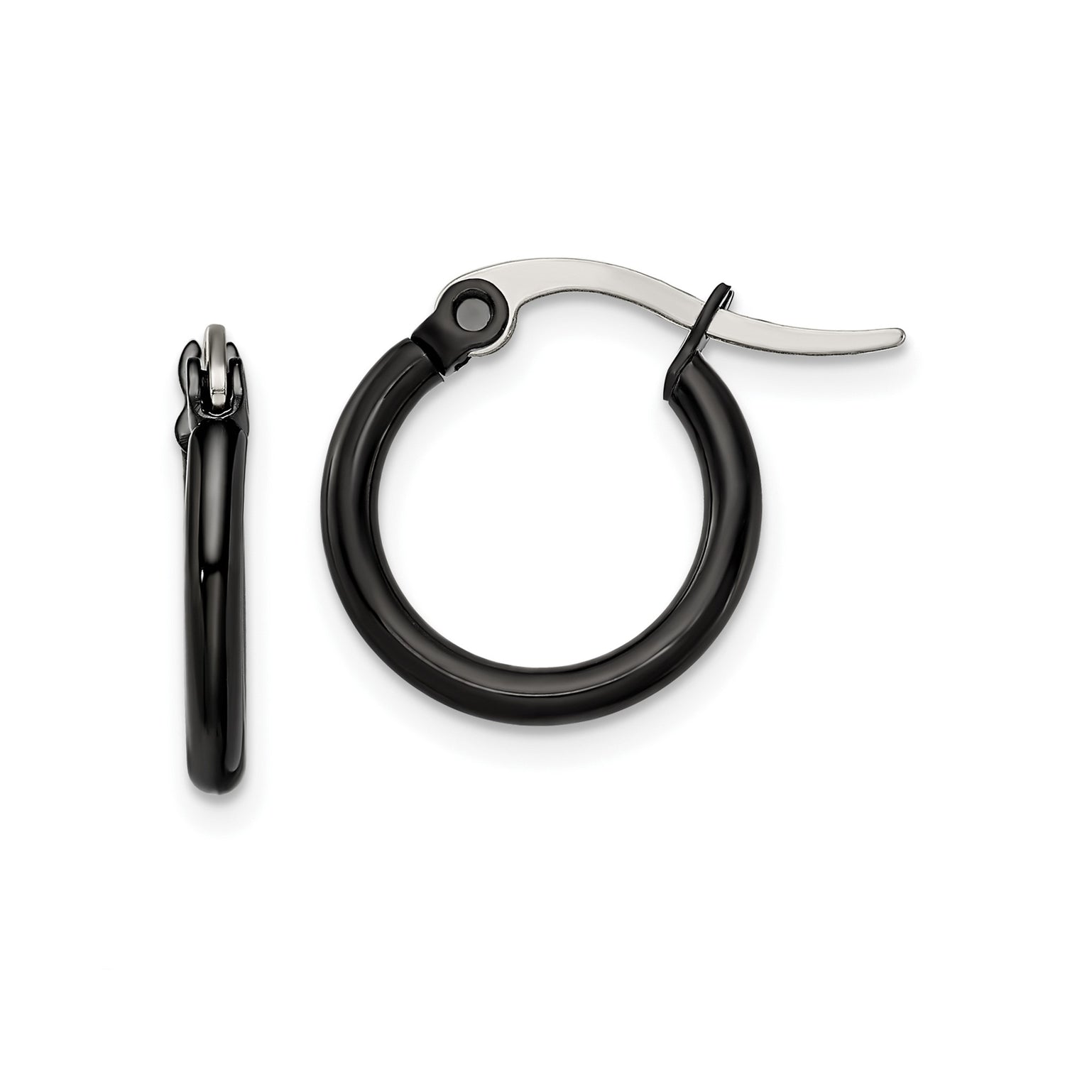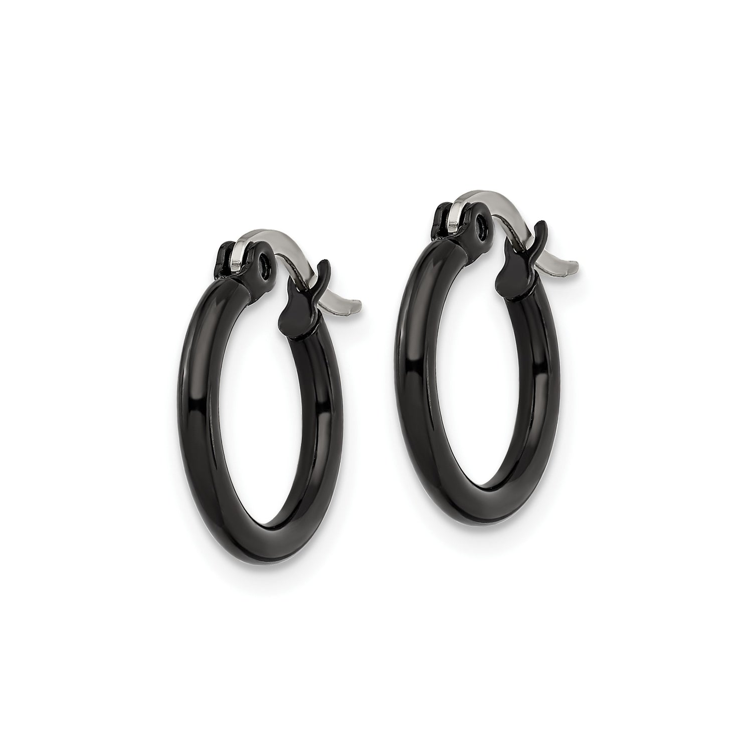 Stainless Steel Hoop Earrings, Black Polished Finish, Sleek Modern Unisex Style