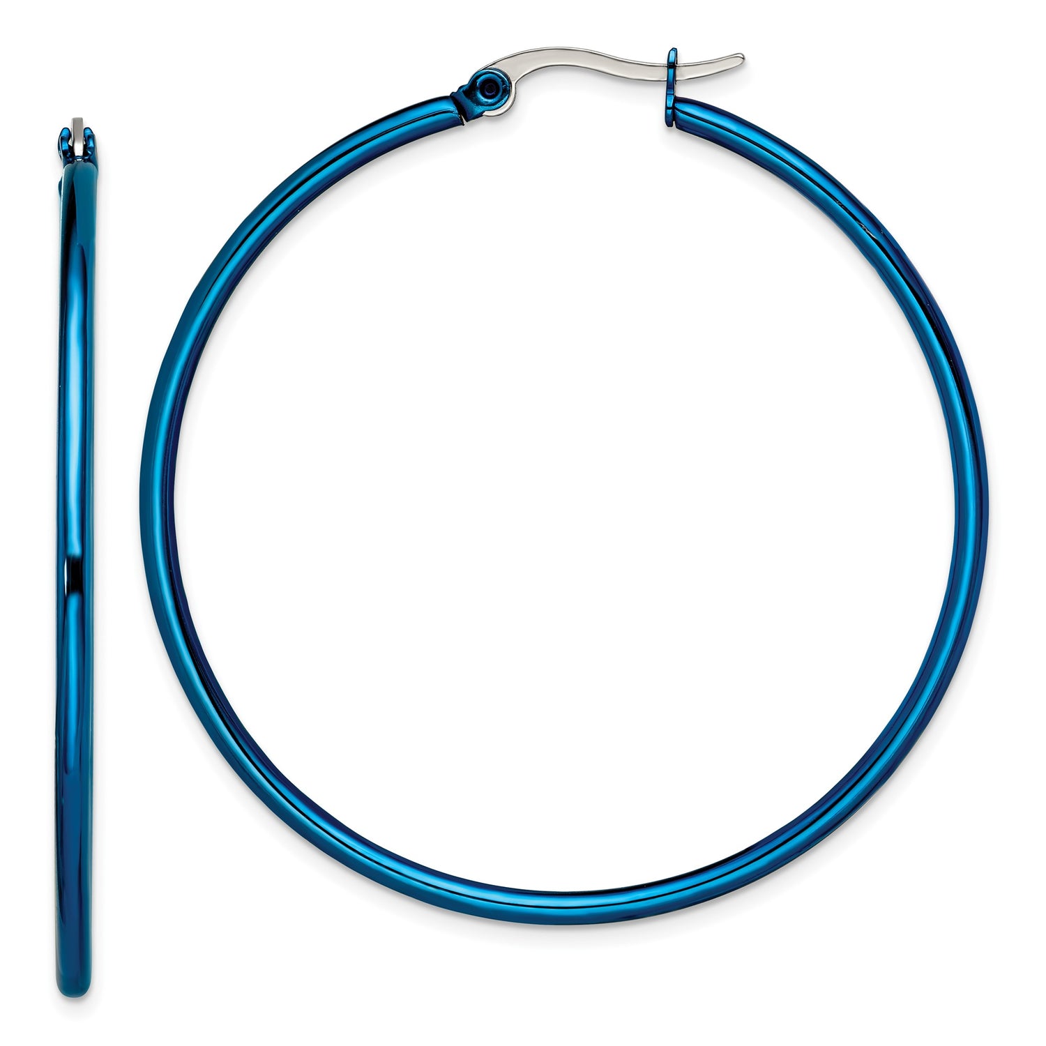 Choose These Contemporary Stainless Steel Hoops For Their Neutral Tone Hoops Appeal And Comfortable Lightweight Daily Hoops Design. Combining The Character Of Bold Stainless Hoop Earrings With The Grace Of Elegant Statement Hoops, They Become A Staple In Any Ear Jewelry Rotation, Perfect For Those Who Embrace Clean Design Blue Earrings.