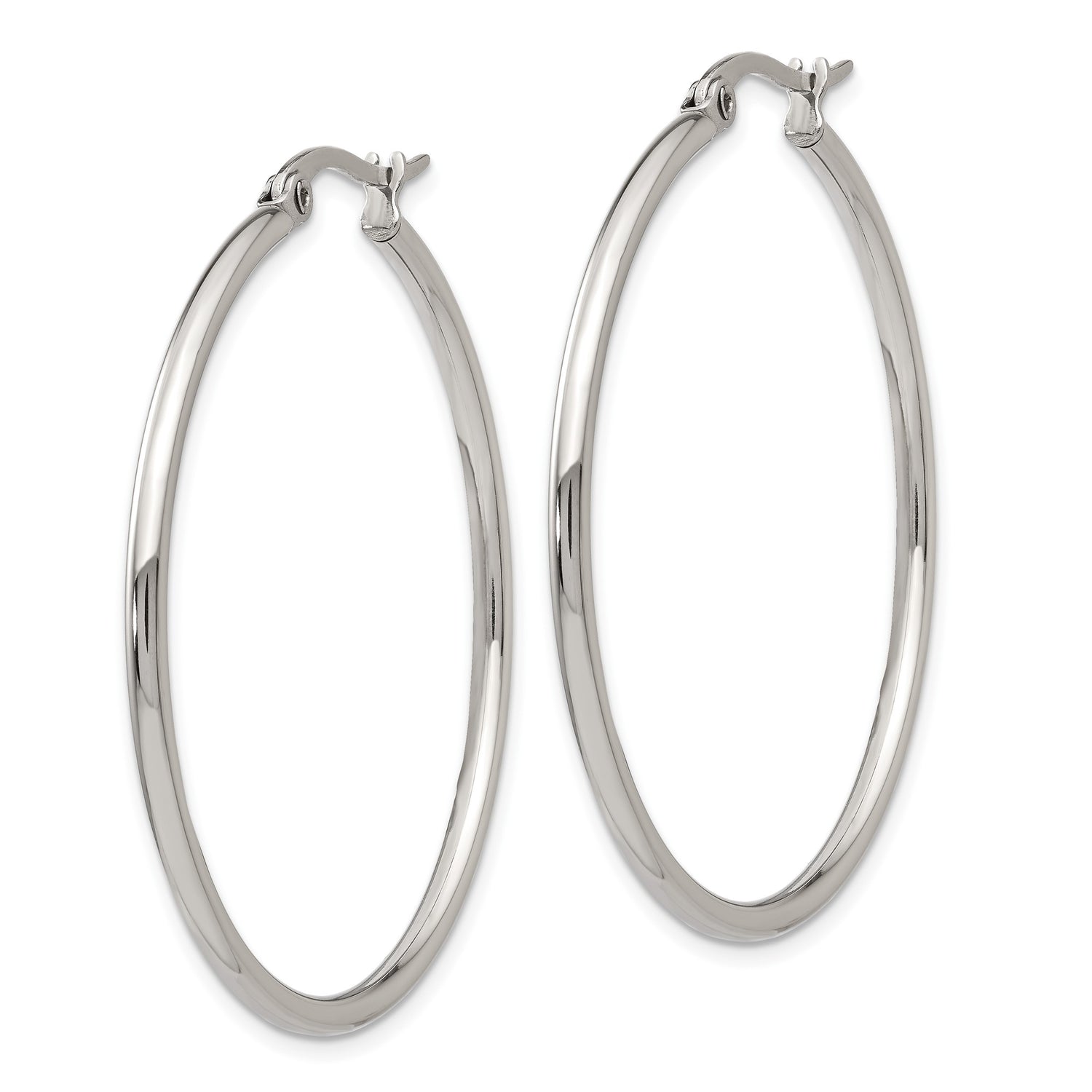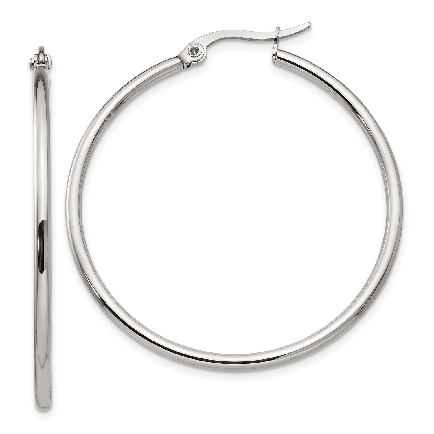 Stainless Steel Hoop Earrings, Large Silver Tone Polished Minimalist Style for Women