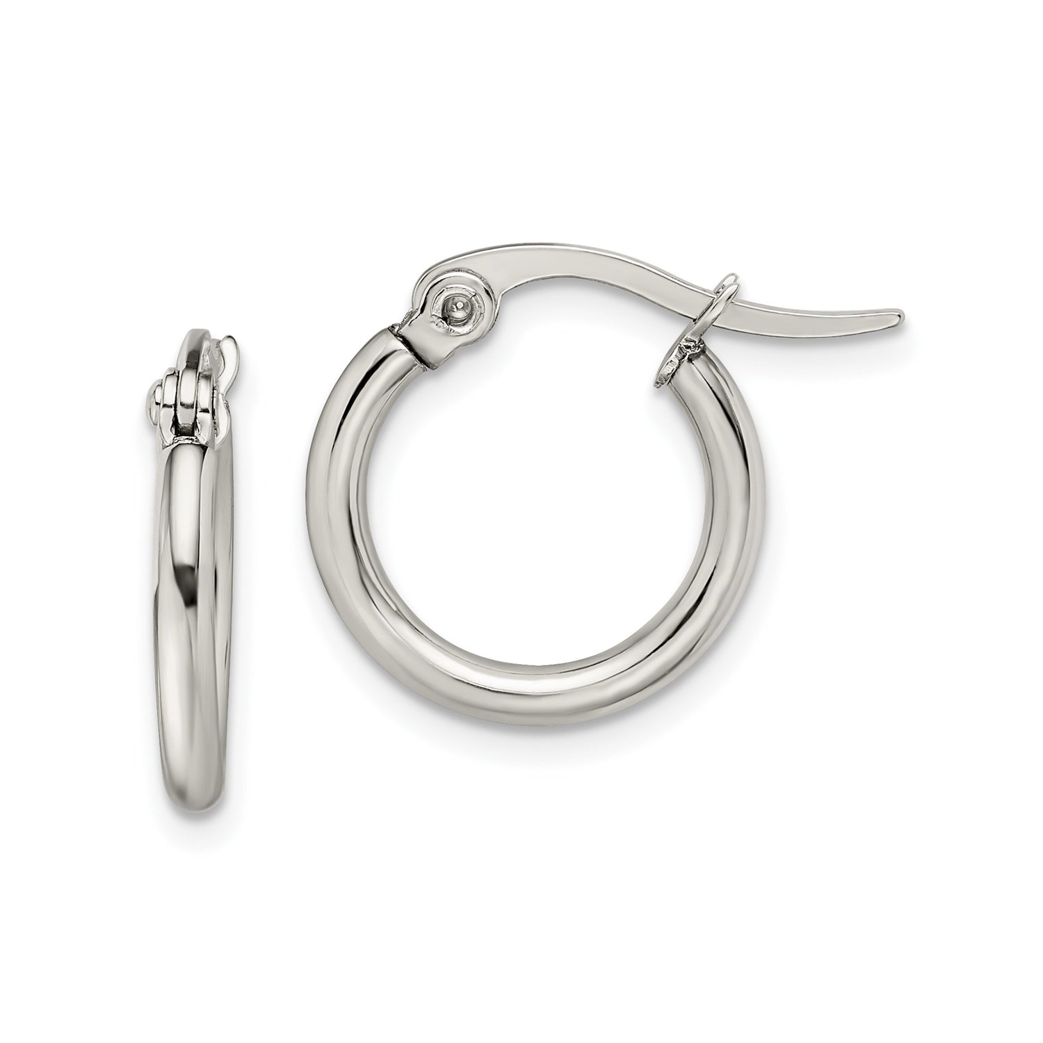 Stainless Steel Hoop Earrings, Polished Round Design with Latch Back, Unisex Minimalist Style