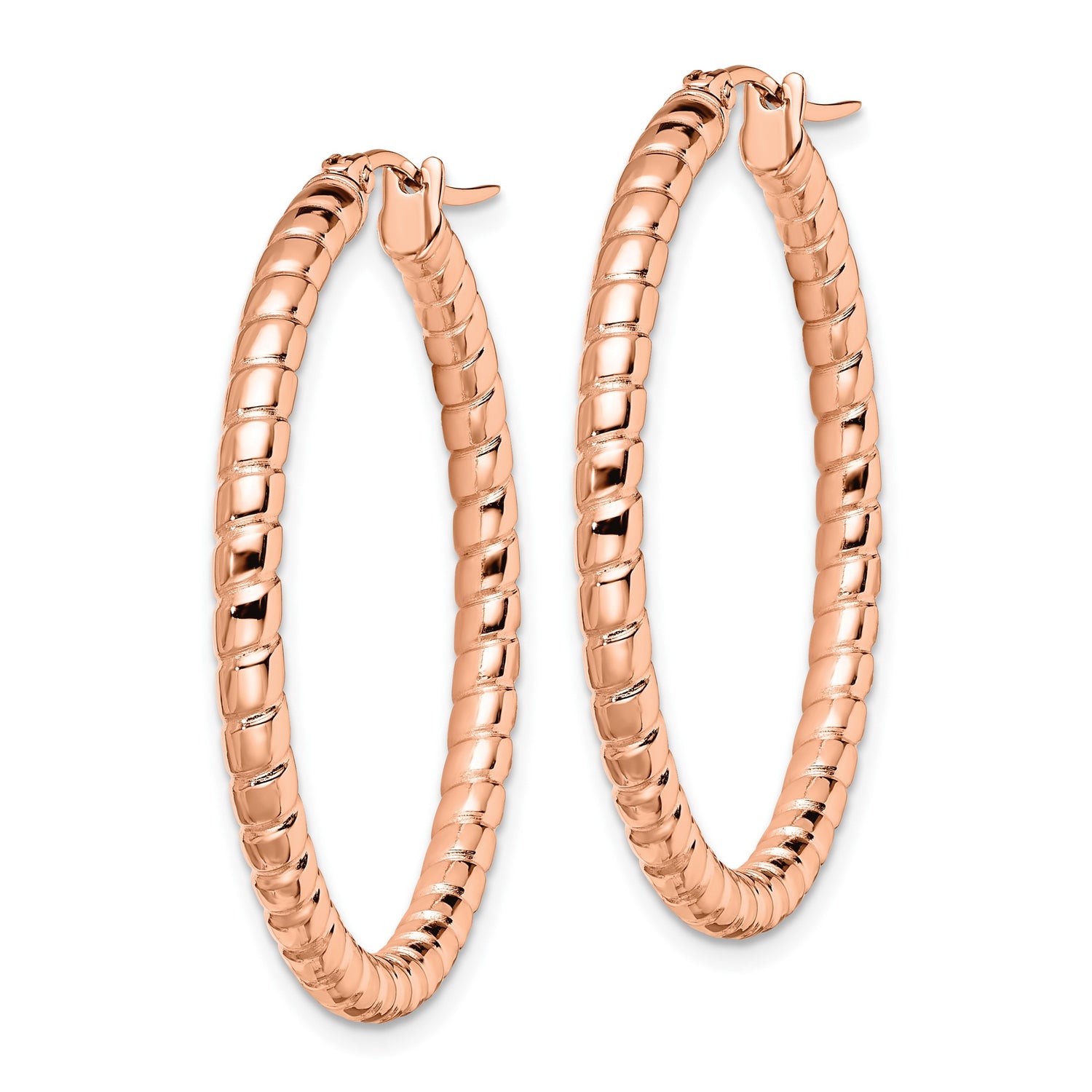 Stainless Steel Hoop Earrings, Rose Gold Tone Twisted Ribbed, Lightweight Modern Style