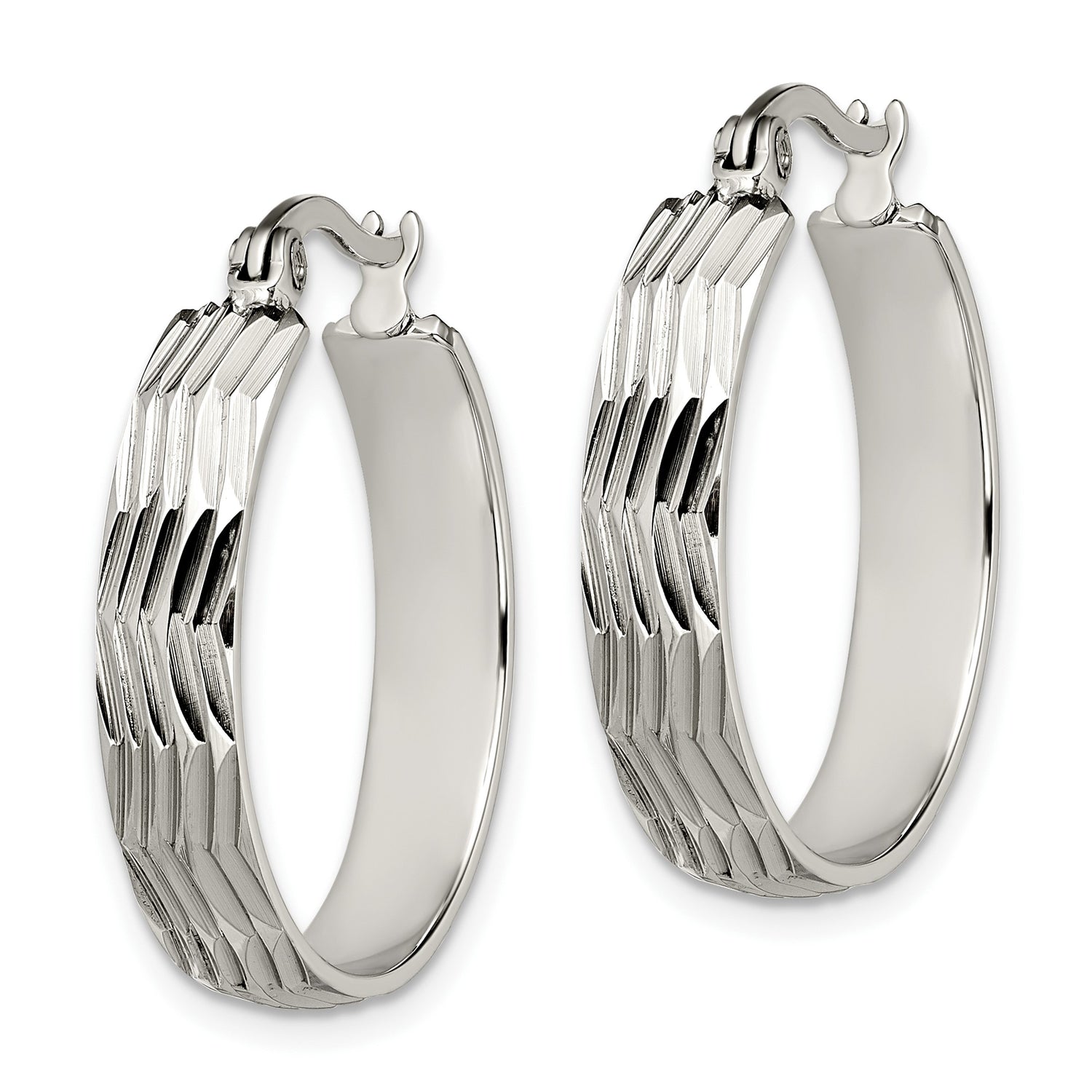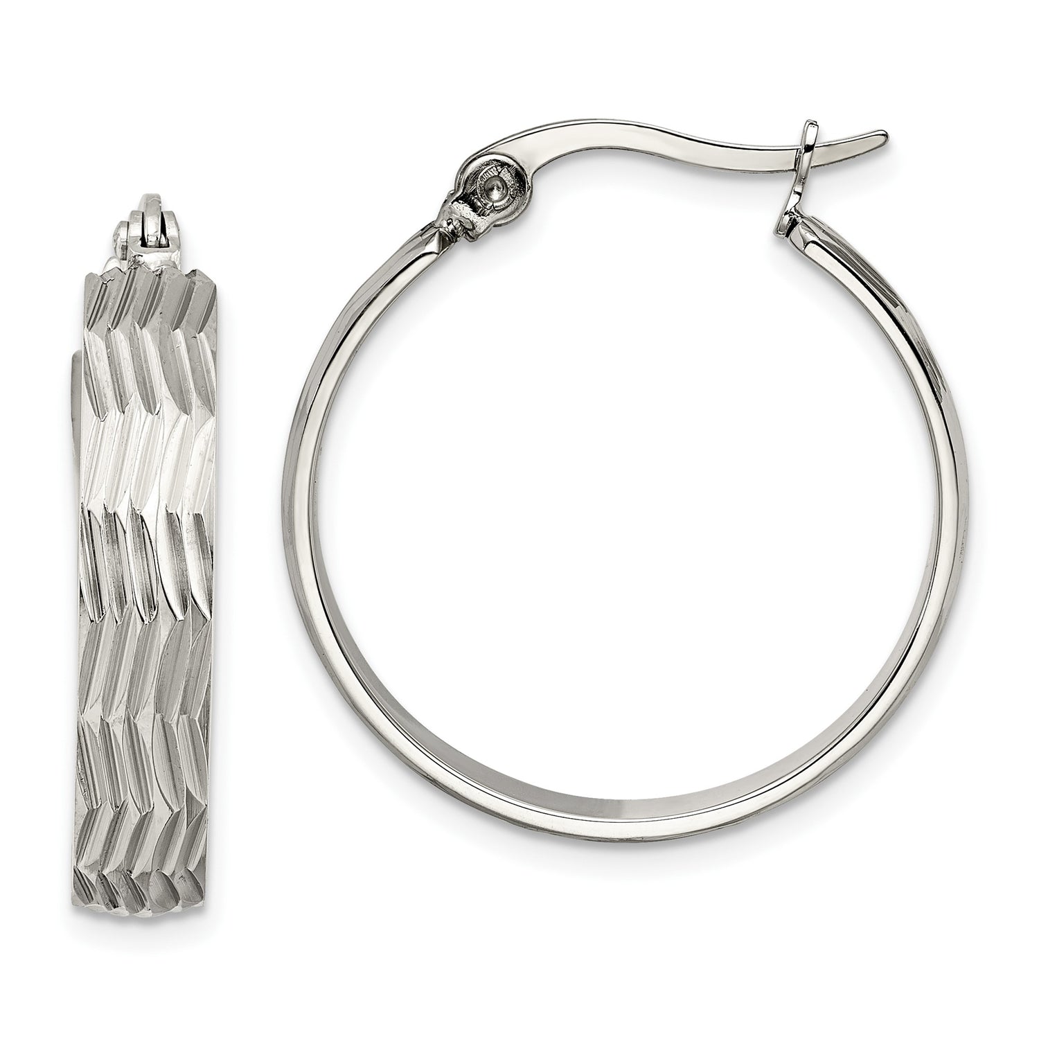 Stainless Steel Hoop Earrings, Textured Diamond Cut with Polished Finish, Lightweight Modern Style