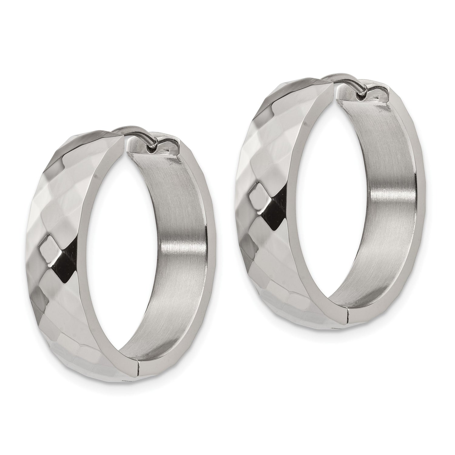 Stainless Steel Hoop Earrings with Faceted Hammered Texture, Modern Minimalist Unisex Design