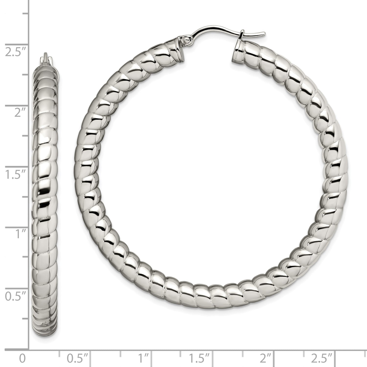 Stainless Steel Hoop Earrings with Polished Ribbed Design, Modern Textured Style for Women