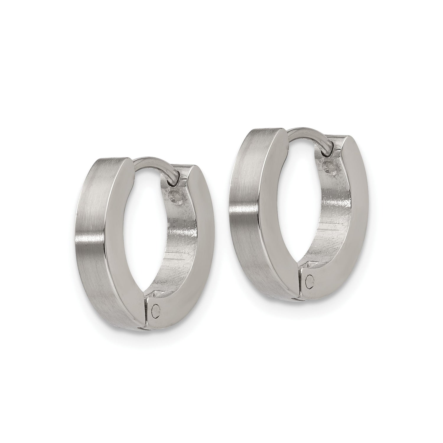 Featuring a brushed polished finish, these steel minimalist huggie earrings reflect the best in urban style hoop earrings. The minimalist men's hoop earrings deliver a masculine minimalist hoop earrings profile, with plain brushed stainless hoops that maintain their shine throughout the day. These non-symbolic hoop earrings avoid unnecessary embellishments for a sleek metal hoops look that elevates every appearance. Embrace the edge of fashion with contemporary hoop earrings that offer both comfort and a clean design men's hoops aesthetic.