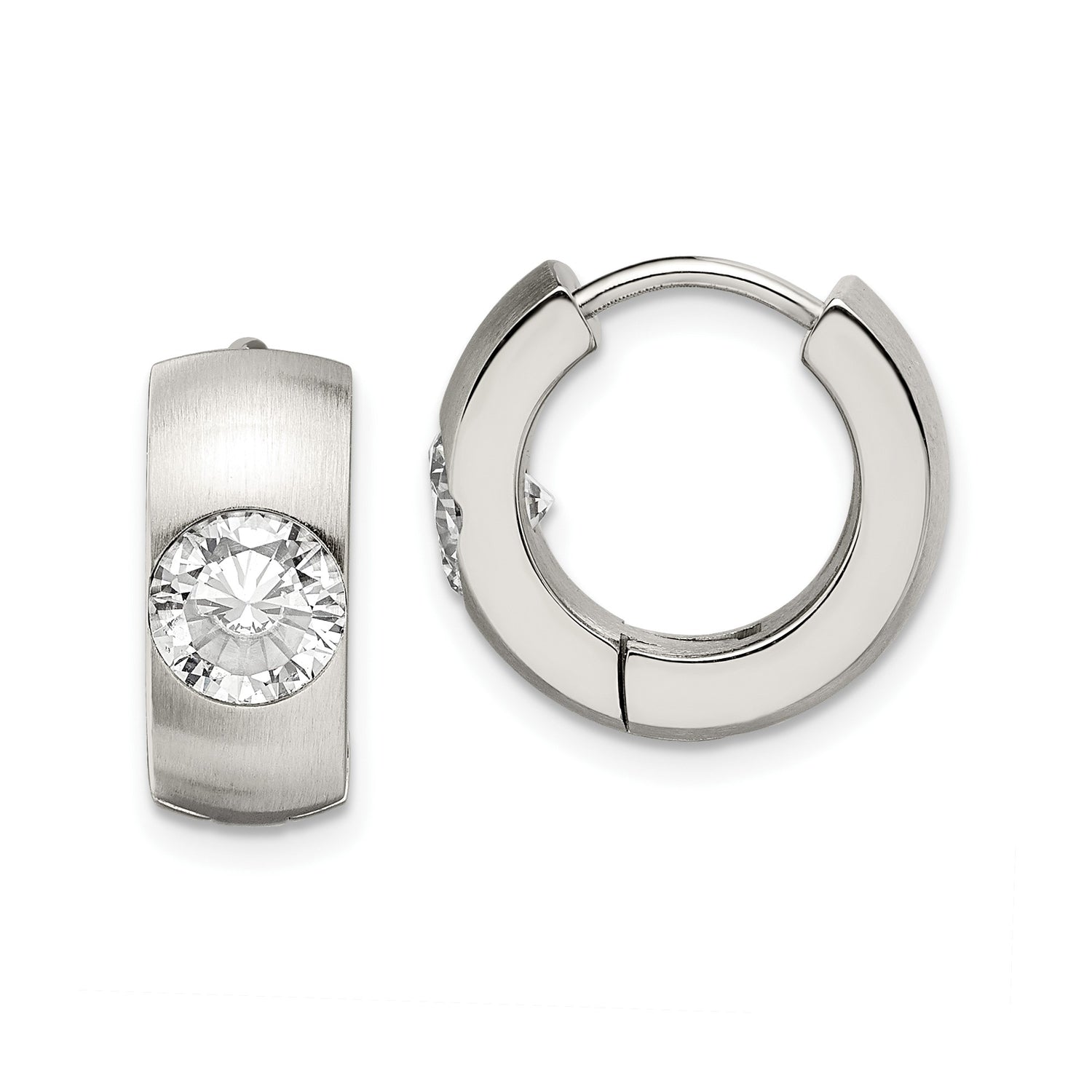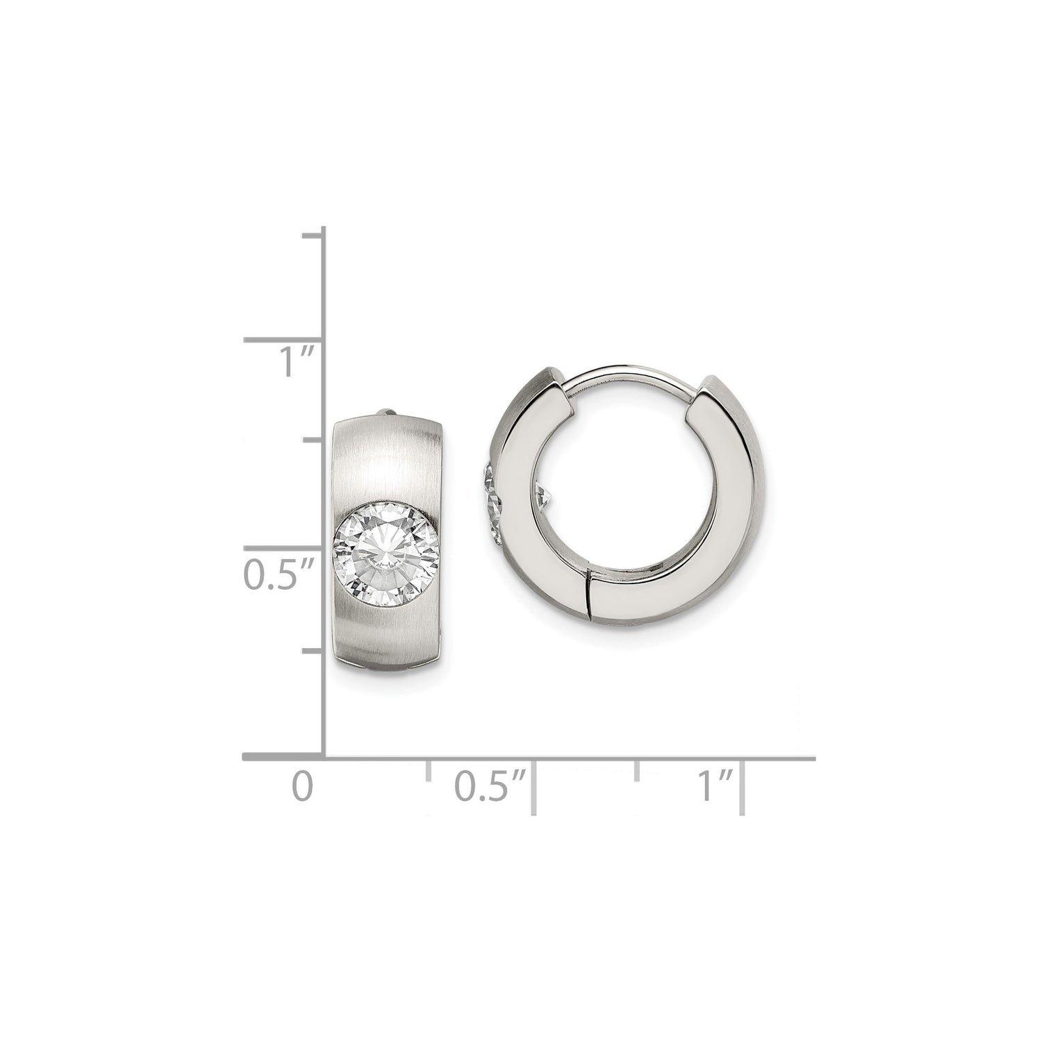 Stainless Steel Huggie Hoop Earrings with Cubic Zirconia, Brushed Polished Finish, Minimalist Design