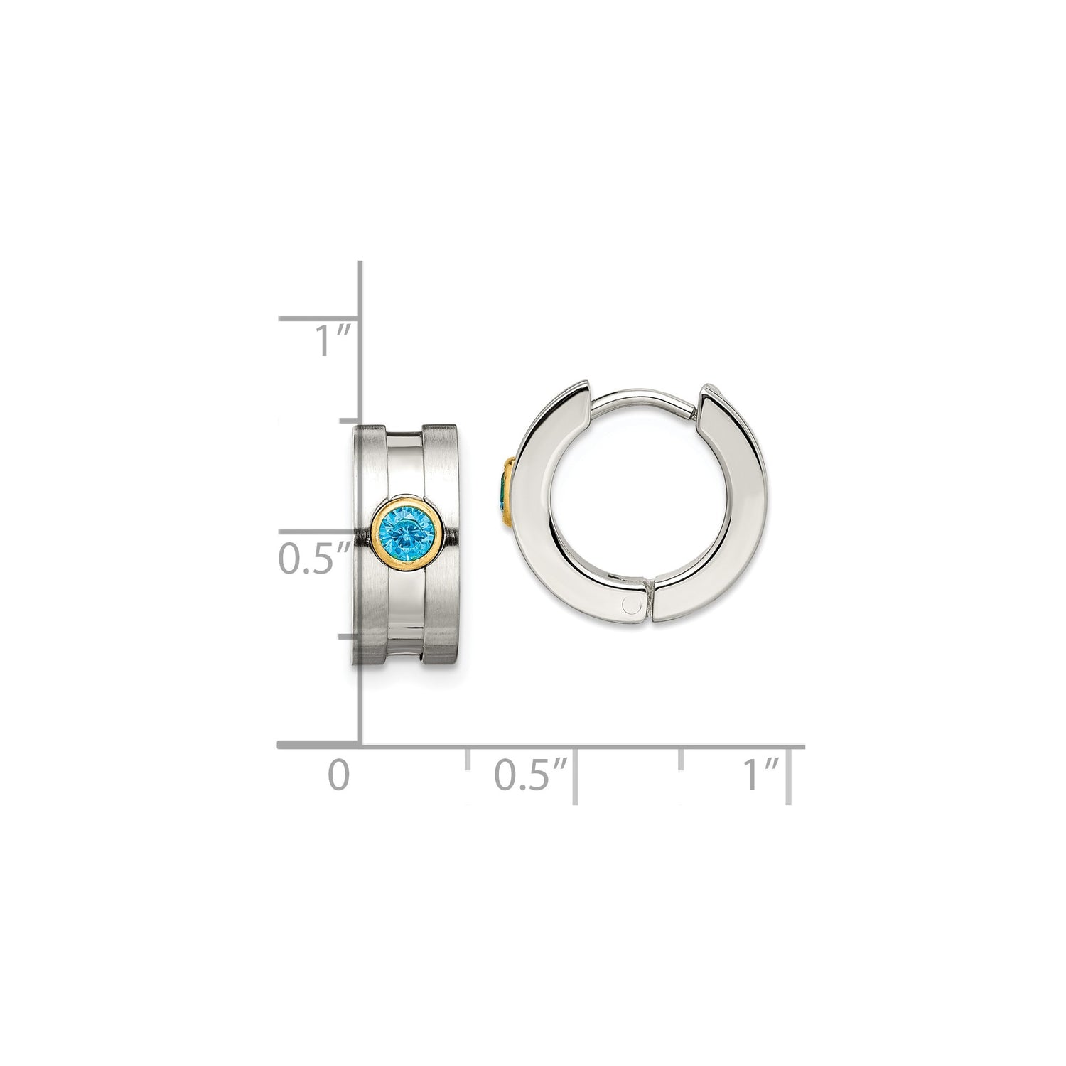 Add a New Edge to Your Style with These Modern Earrings That Seamlessly Combine Sleek Materials and Bold Color. The Polished Finish Enhances the Silver Tone of the Stainless Steel, While a Brilliant Teal Stone Encased in a Gold Bezel Gives These Casual Earrings a Sophisticated Twist. Ideal for Fans of Minimalist Earrings, These Circular Hoops Feature Clean Lines and a Compact Design That Suit a Wide Range of Looks. Whether You're Heading to the Office or Out for the Evening, These Stylish Hoops Provide Flexible Mens Fashion Options.