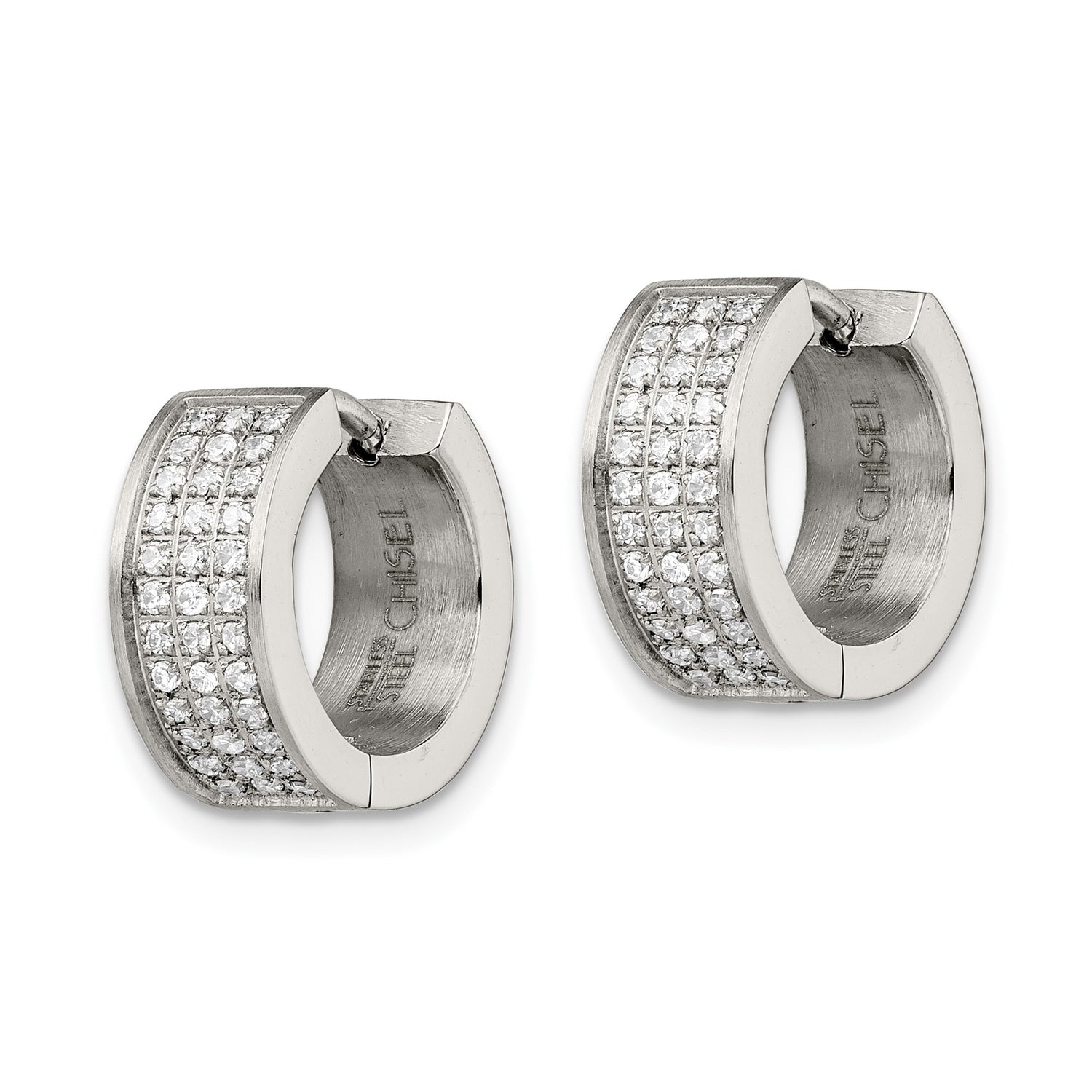 Stainless Steel Huggie Hoop Earrings with Cubic Zirconia, Polished Modern Minimalist Design