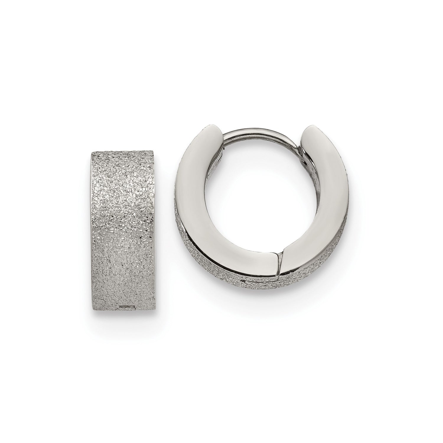 Stainless Steel Huggie Hoop Earrings with Textured Exterior and Smooth Interior Finish