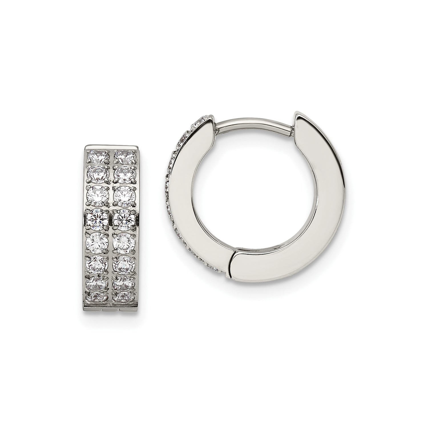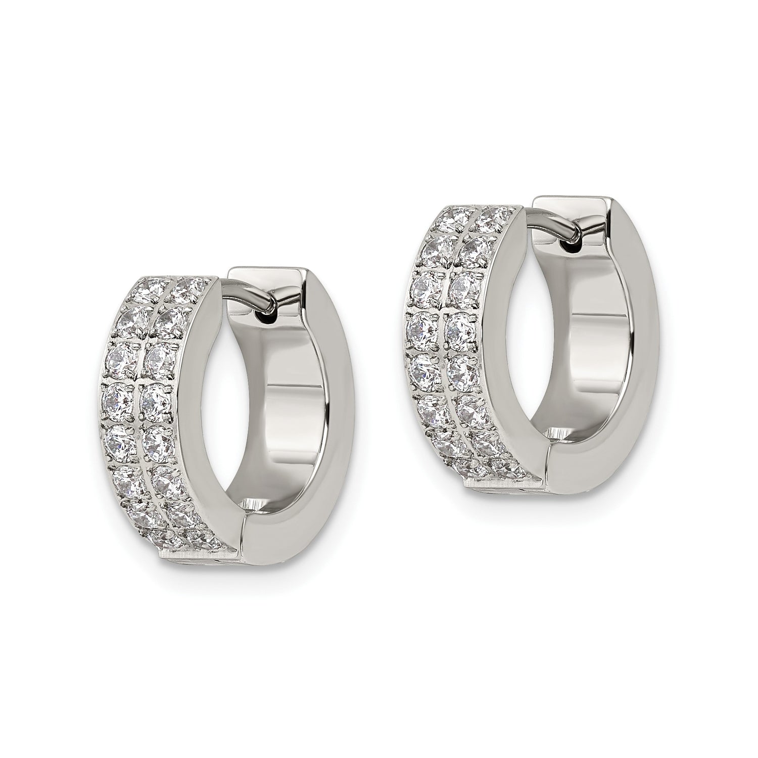 Enhance Your Daily Look With These Sleek Stainless Steel Earrings That Offer A Sophisticated Blend Of Modern Style And Enduring Shine. Designed With Clean Lines And Three Row Zirconia Embellishment, These Minimalist Hoop Earrings Showcase A Sparkling Display Of Round Cut CZ Stones Set Into Durable Steel. The Piece Embodies The Best Of Contemporary Stainless Steel Hoops With A Silhouette Made For Everyday Elegance.
