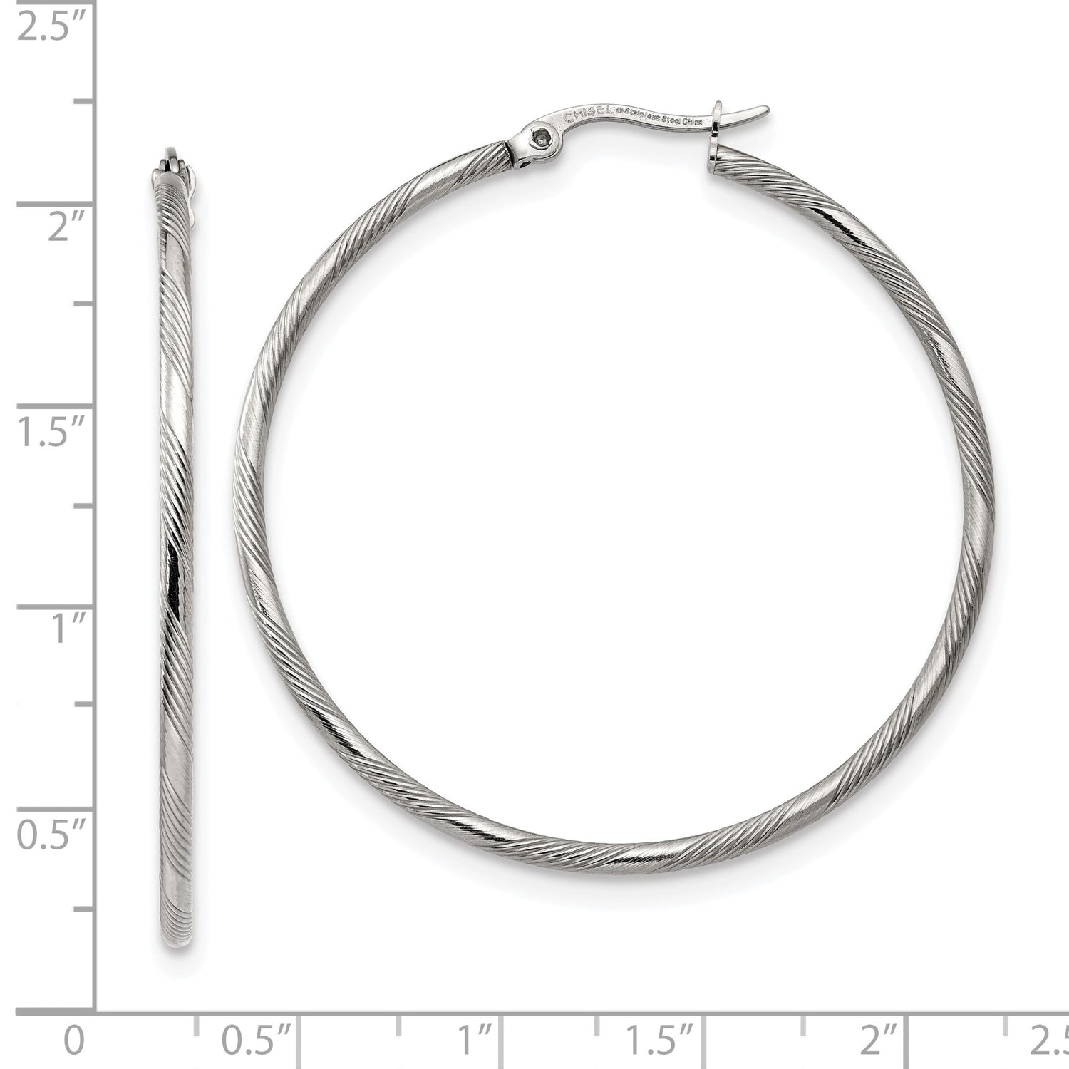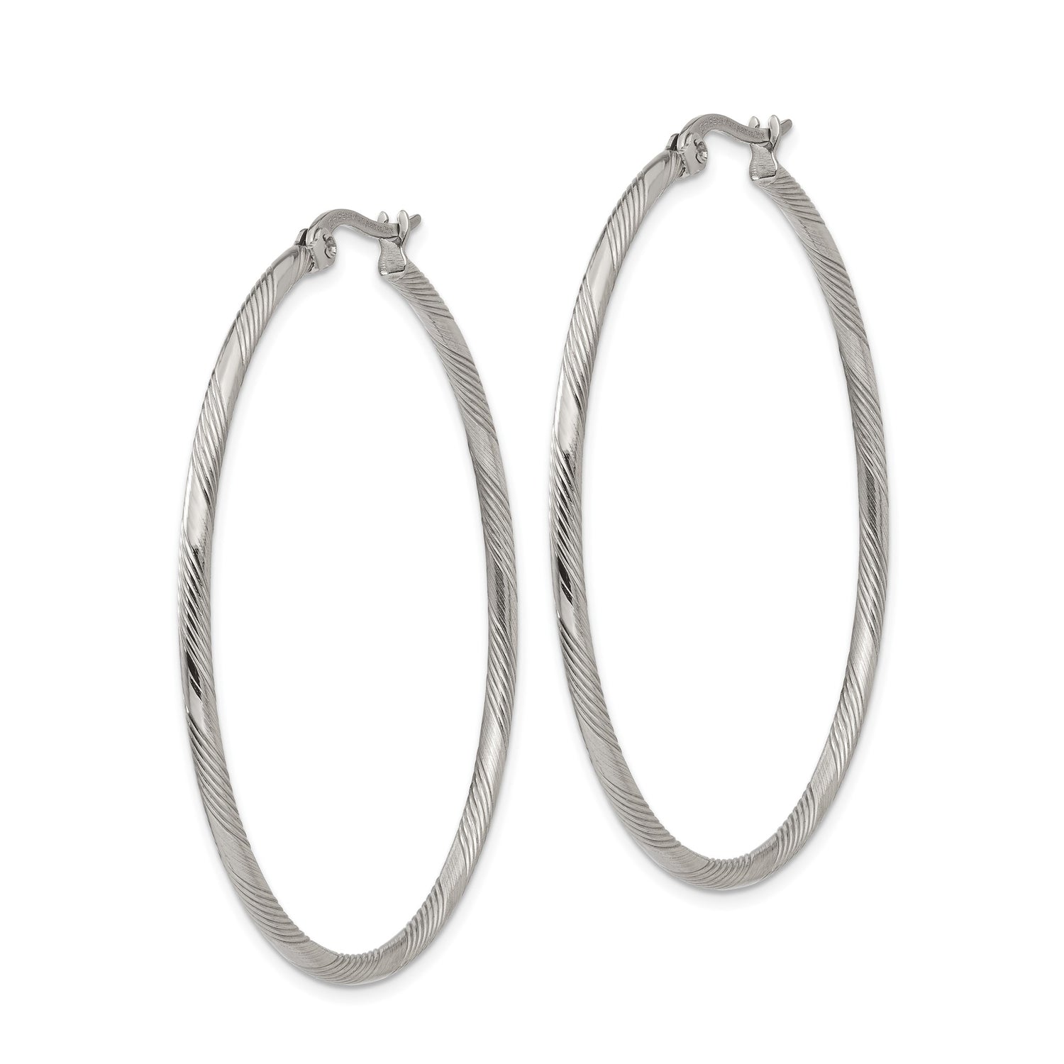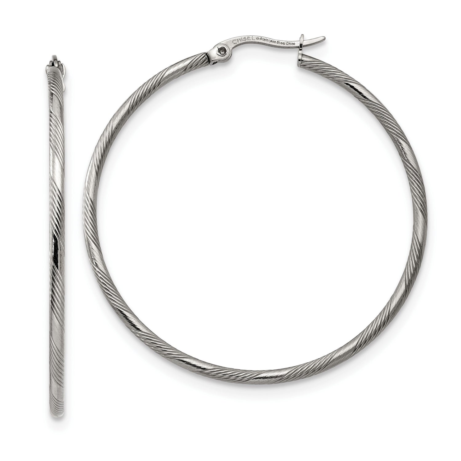 Crafted For Comfort And Style, These Textured Silver Hoop Earrings Showcase A Twisted Pattern That Brings Depth And Shine To Any Ensemble. The Durable Steel Hoops Feel Lightweight While Retaining Long-Term Wearability And Elegant Form. Rounded Polished Steel Earrings Maintain Their Bright Finish And Shape Over Time, Making These A Go-To Accessory That Fits Flawlessly Into Any Fashion Forward Wardrobe.