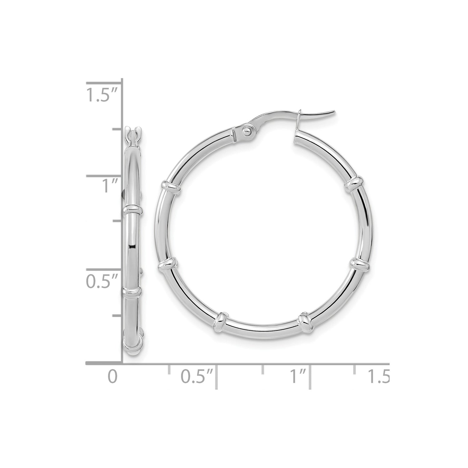 White Gold Bamboo Hoop Earrings with Smooth Segmented Design for Women