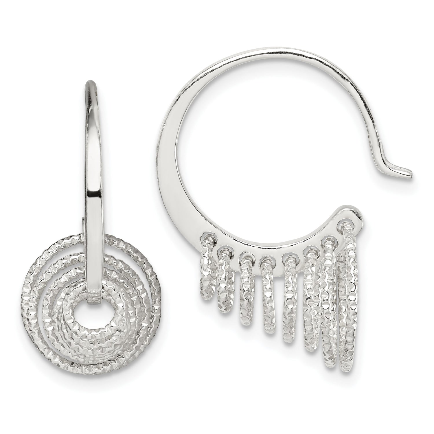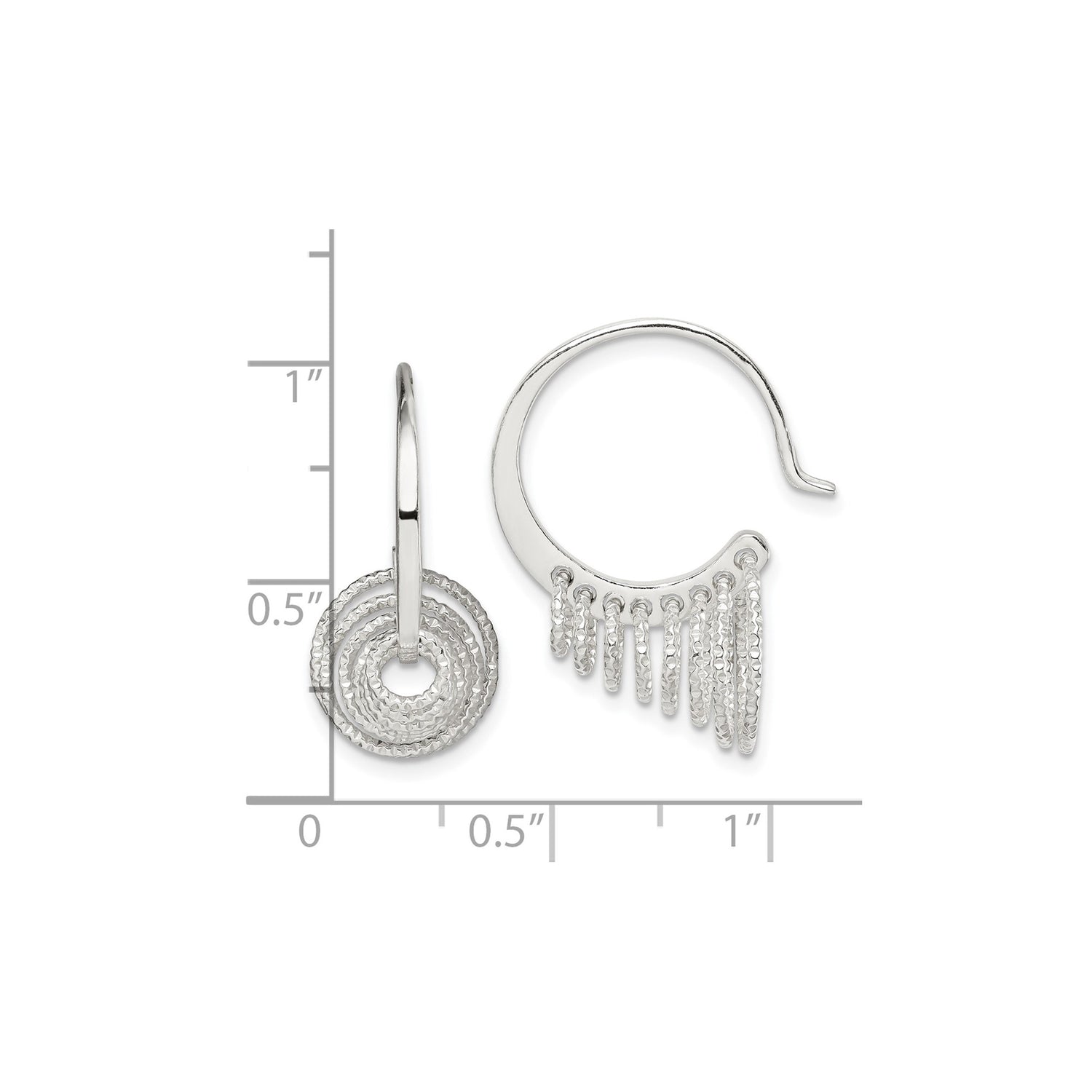 Sterling Silver Dangle Hoop Earrings with Textured Concentric Circle Drops, Hammered Finish Rings