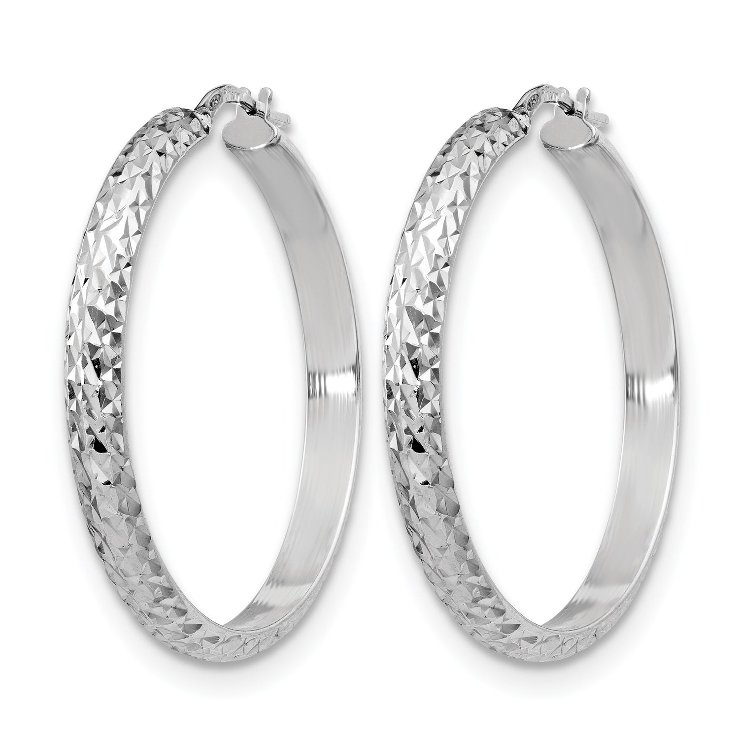 Sterling Silver Hoop Earrings, Diamond-Cut Textured Round Lightweight Polished Design for Women