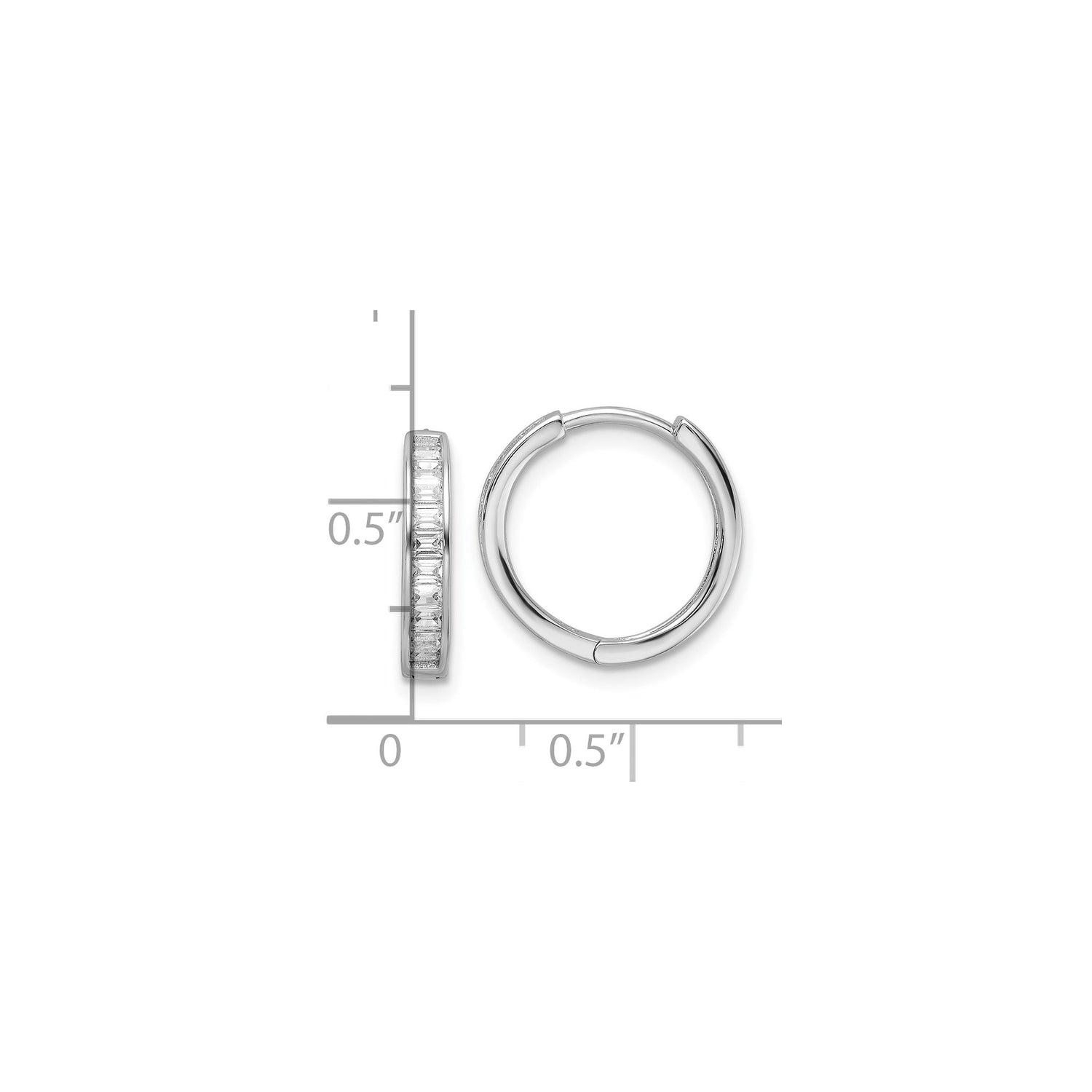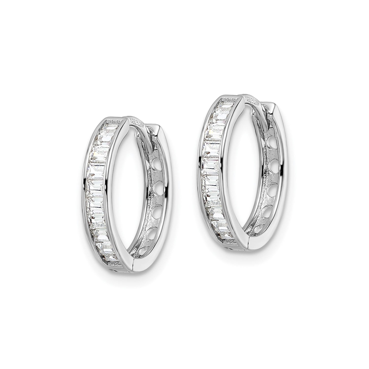 Crafted with Care, These Lightweight Silver Hoops Feature a Secure Hinged Closure That Lets You Move with Comfort and Confidence All Day Long. The Sleek Channel Set Design Embeds the Rectangular Stones Seamlessly into the Surface, Resulting in Modern Earrings That Offer Dimension Without Excess. Whether You're Reaching for Polished Hoop Earrings to Match Your Evening Ensemble or Searching for Simple Hoop Earrings to Elevate a Basic Outfit, These Women's Silver Hoops Deliver a Versatile Look That Fits the Occasion.