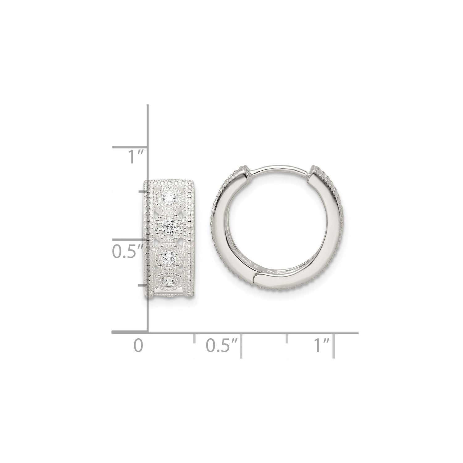Sterling Silver Hoop Earrings with Cubic Zirconia Accents, Vintage Milgrain Detail, Small Lightweight Design