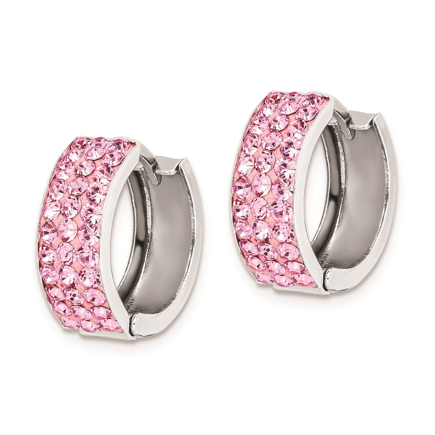 Sterling Silver Hoop Earrings with Pink Crystals, Pave Set Round Cut Lightweight Style