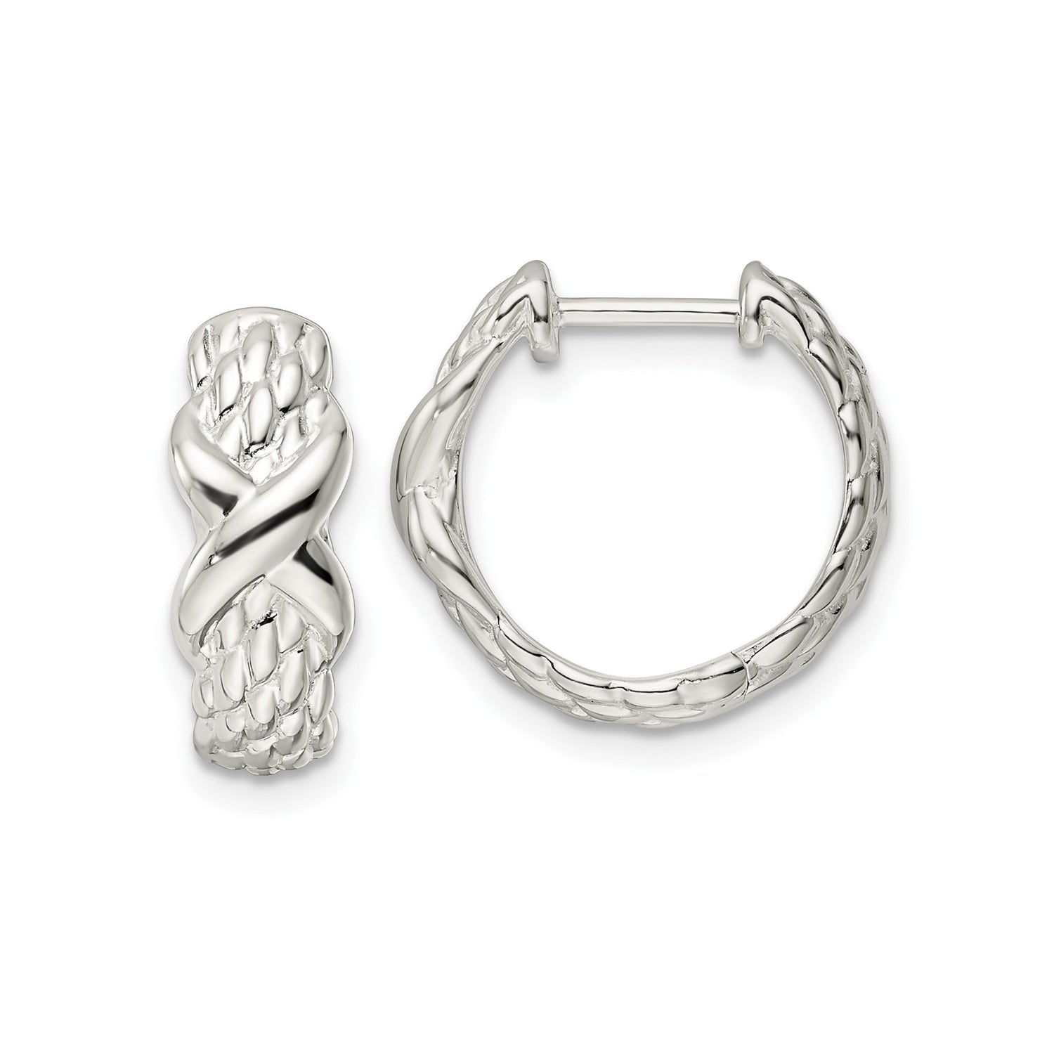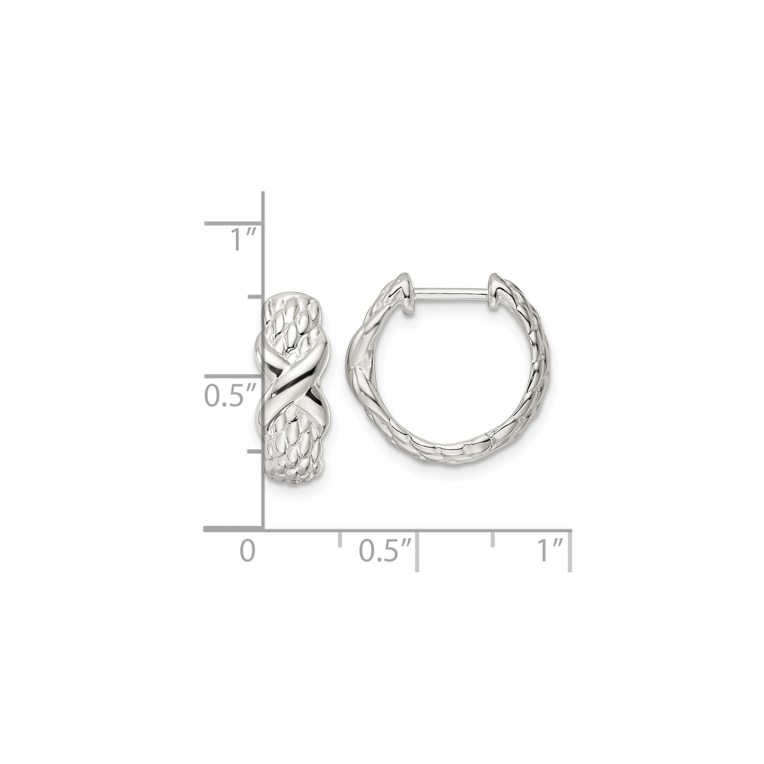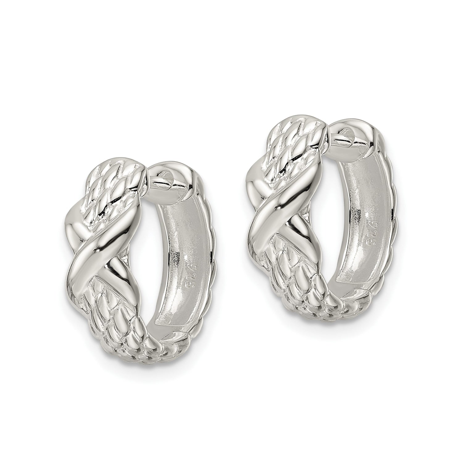 Sterling Silver Hoop Earrings with Woven Texture and Polished X Design